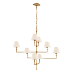 - The sleek brass structure is perfectly complemented by soft, natural linen shades. This elegant contrast between rustic texture and metallic brilliance creates a visually arresting and balanced design.The premium linen shades offer excellent light transmittance, gently diffusing and softening the bulbs' glare. When illuminated, the light filters through the fabric to emit a warm, inviting, and incredibly atmospheric glow, setting a comfortable and elegant mood.