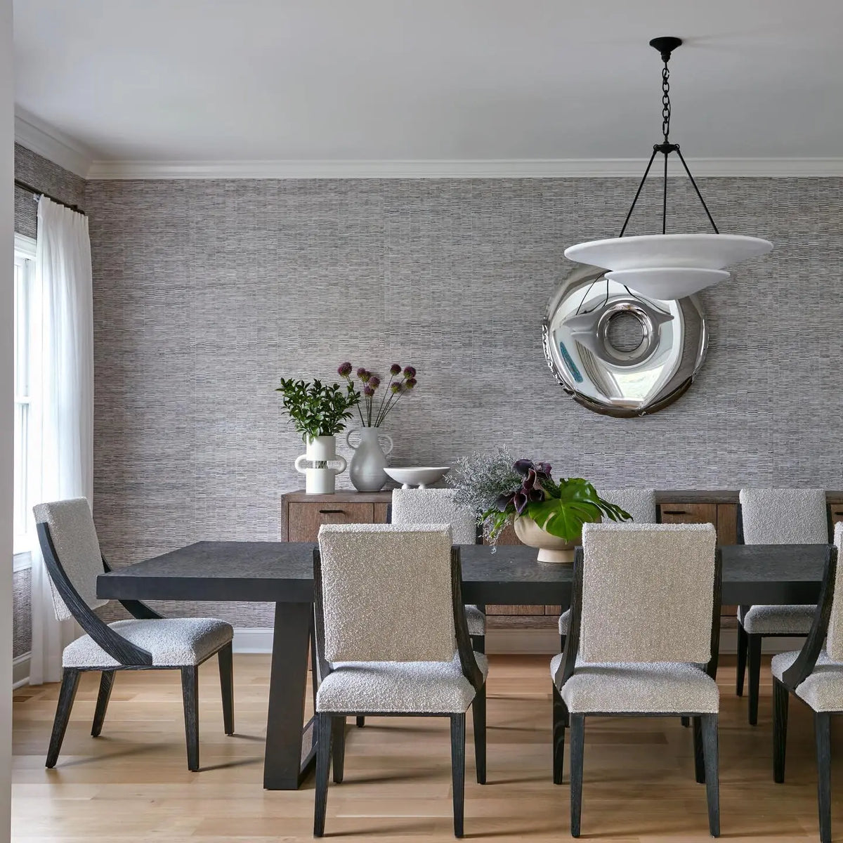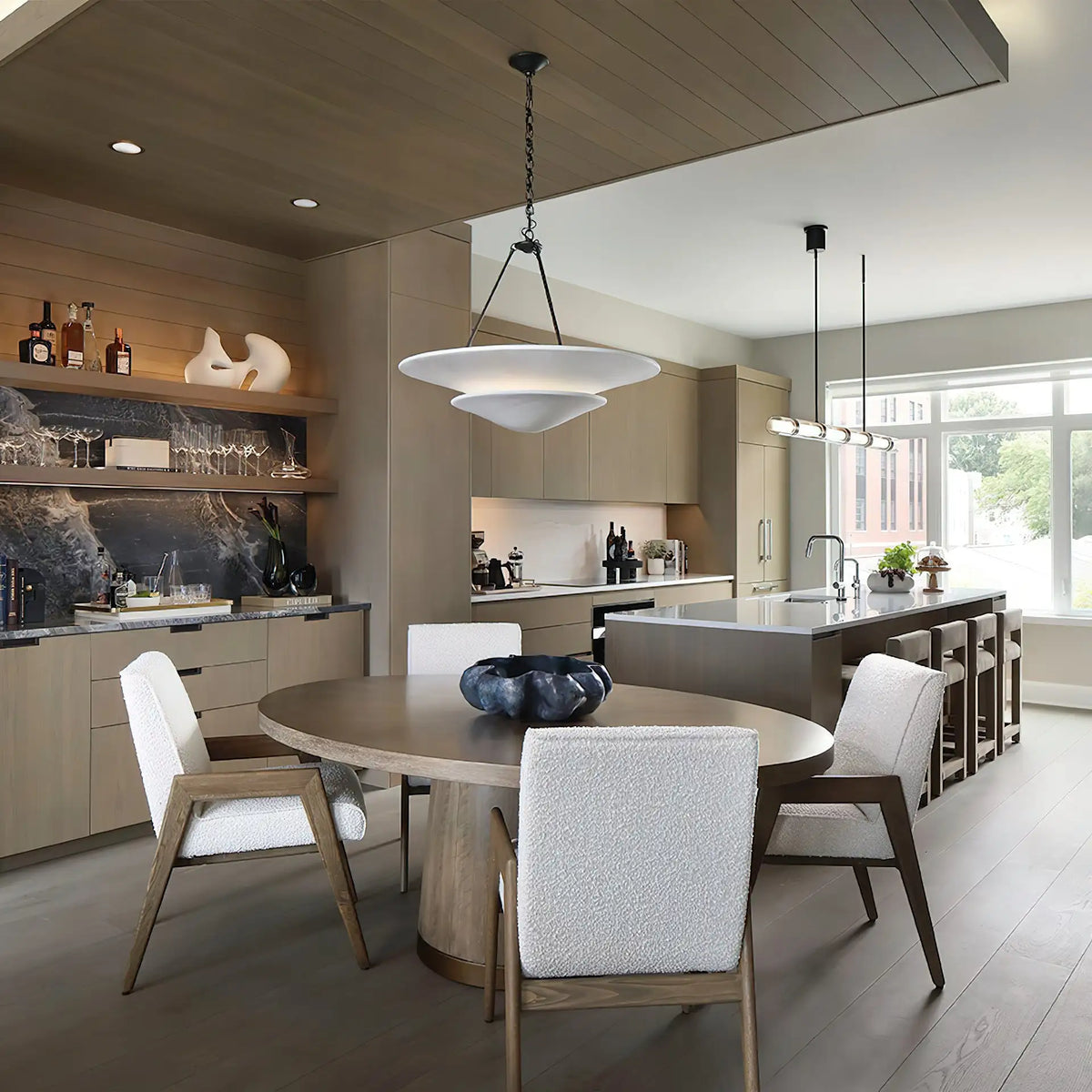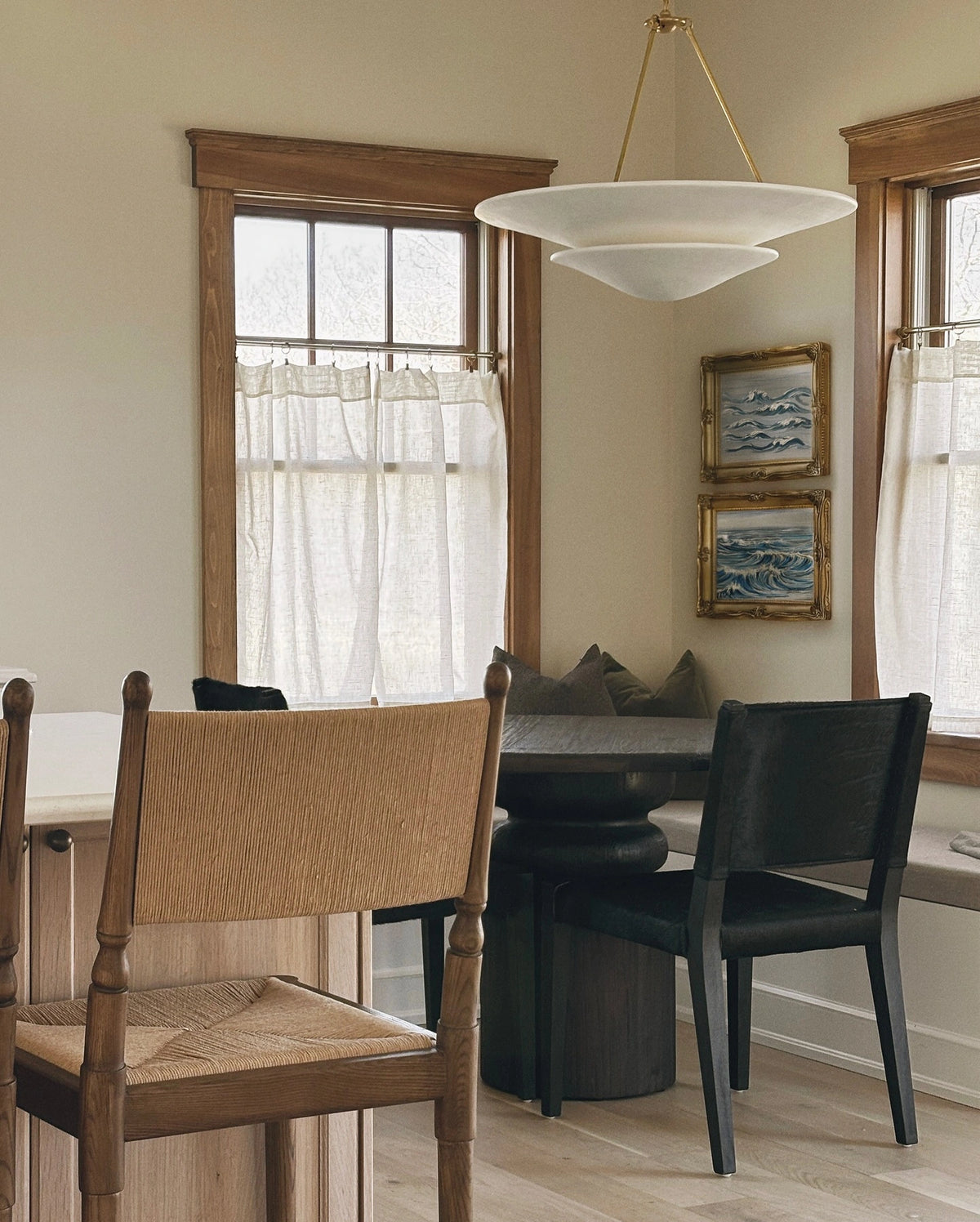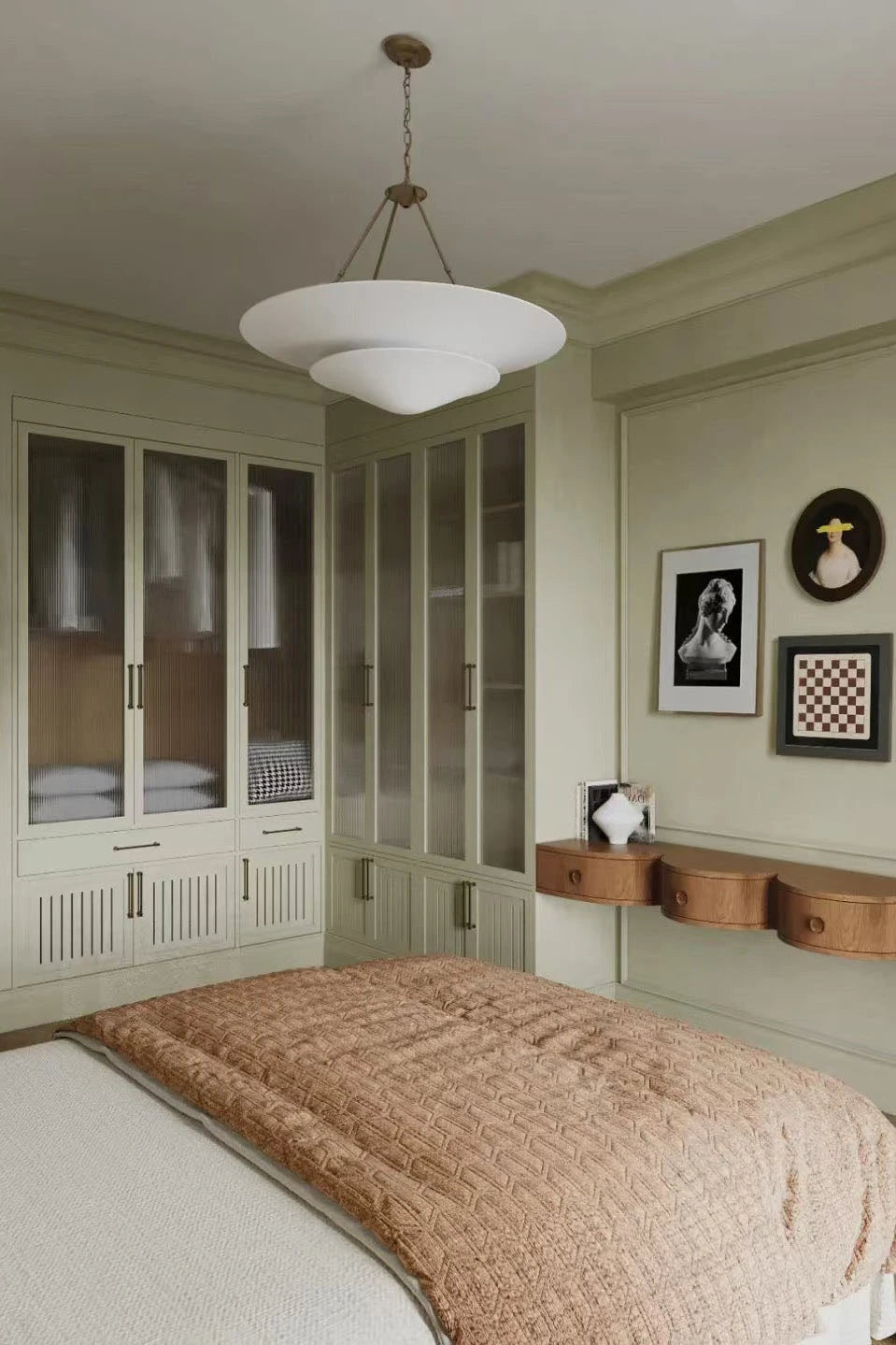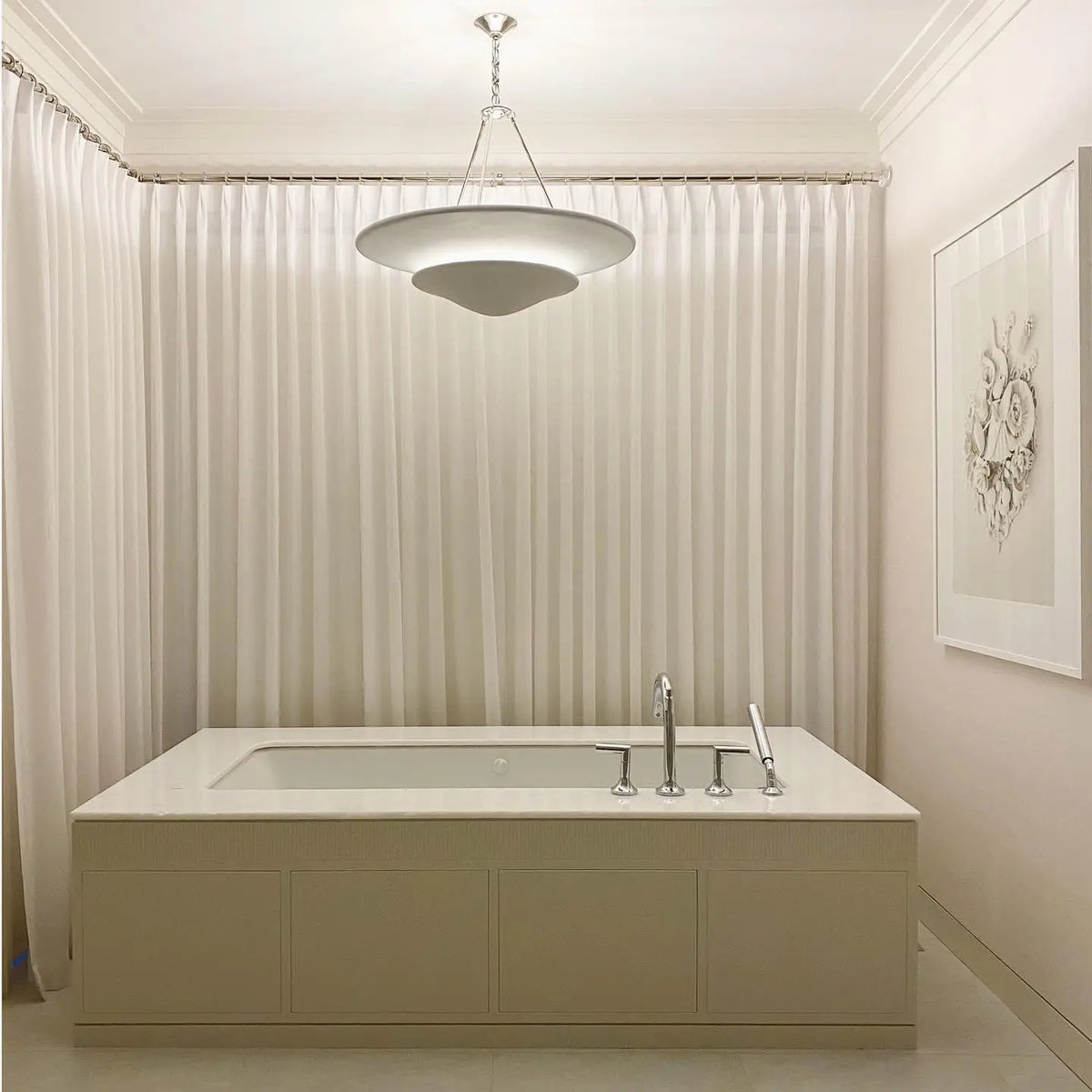 • Illuminate your space with timeless elegance. The Mollino Chandelier is a masterclass in balanced design, artfully blending the warm, vintage charm of brass with the soft, modern simplicity of plaster. This stunning piece is more than just a light source; it's a statement of refined taste and a focal point for any room.