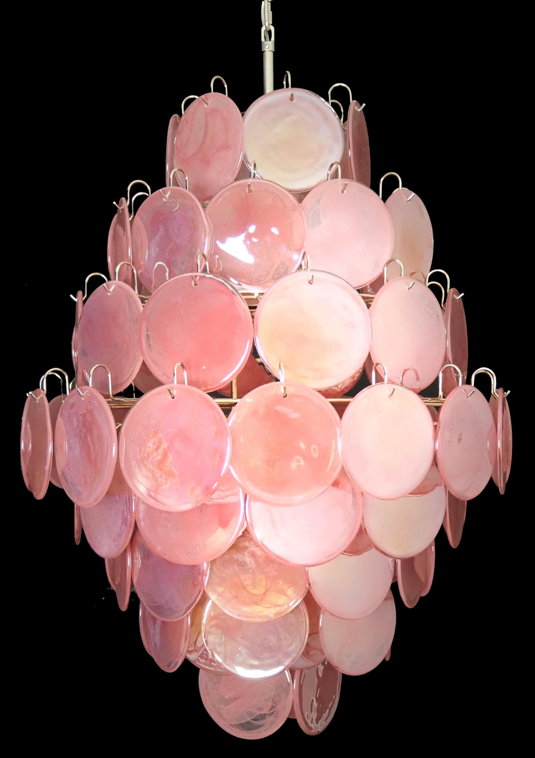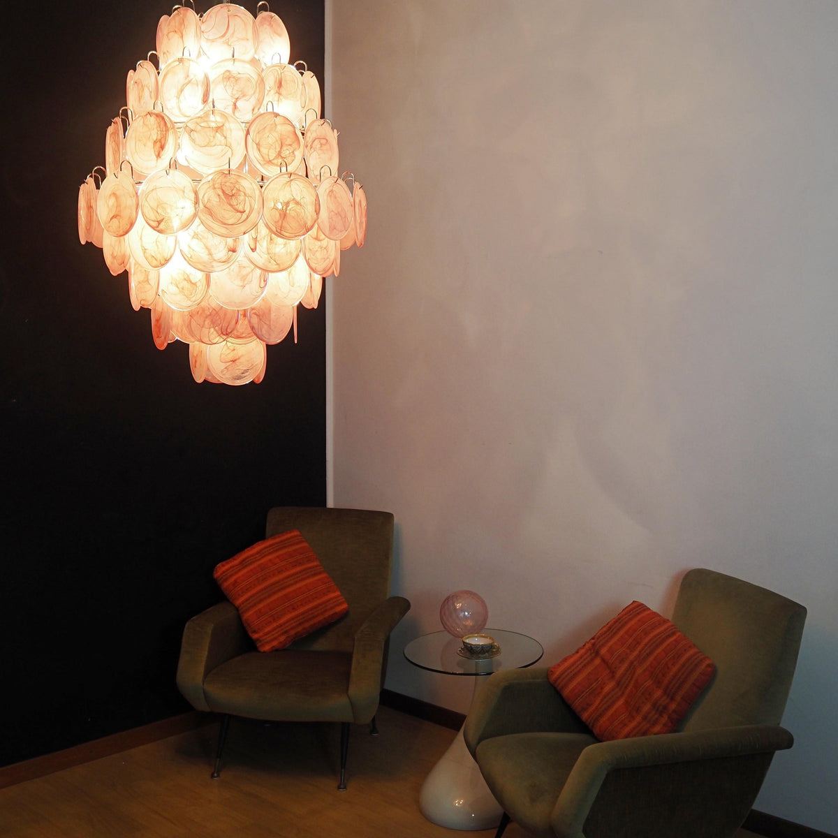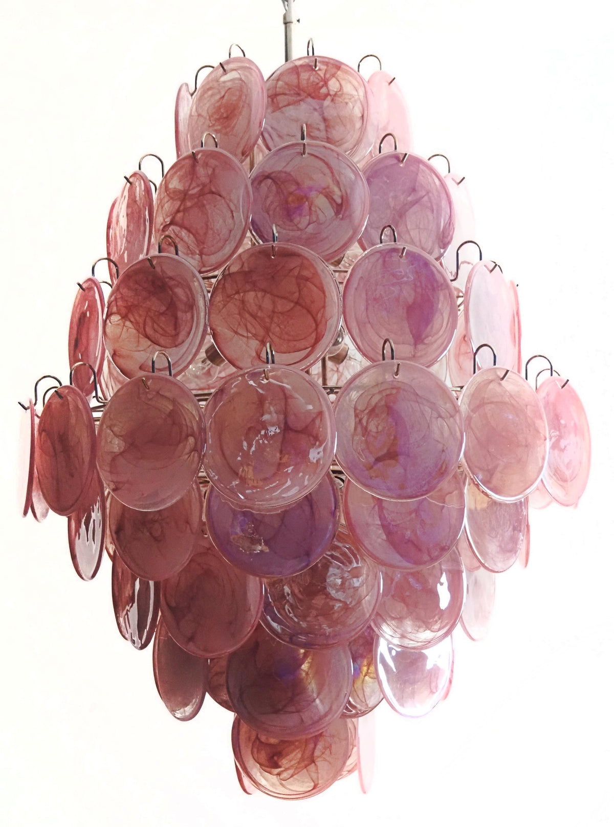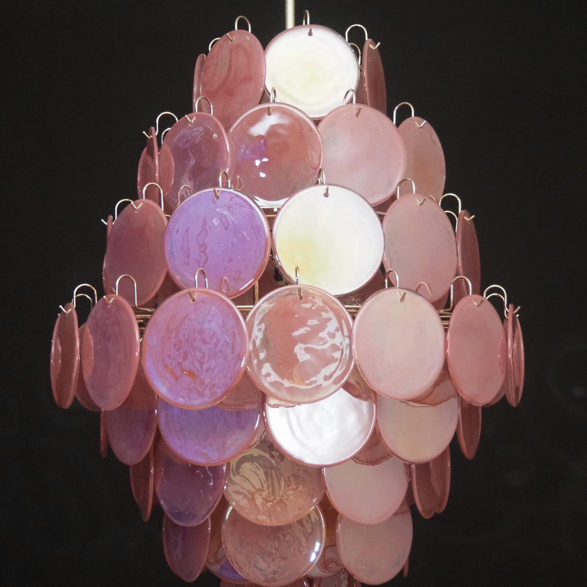 - Transform any room into a breathtaking sanctuary with the Murano Pink Disc Chandelier 87. This stunning piece is more than just a light fixture; it's a captivating work of art, designed to become the heart of your home's decor. Inspired by the legendary glassmaking of Murano, it brings a touch of Italian artistry and romantic charm to your interior.