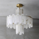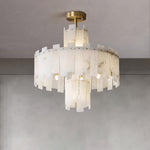 - Many rectangular alabaster are arranged up and down like a palace. The texture of the brass lamp body matches the alabaster perfectly. Olga Alabaster Chandelier will add a touch of elegance to your modern home decor.