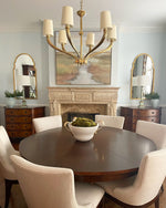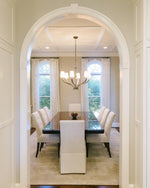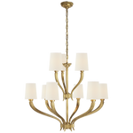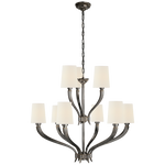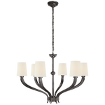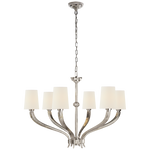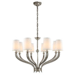 - Elevate your space with the Patty Chandelier, a stunning fusion of refined craftsmanship and contemporary design. Featuring ribbed detailing for added texture and depth, this chandelier exudes understated luxury. The elegant linen shades soften the light, creating a warm and inviting ambiance perfect for dining rooms, living spaces, or entryways.