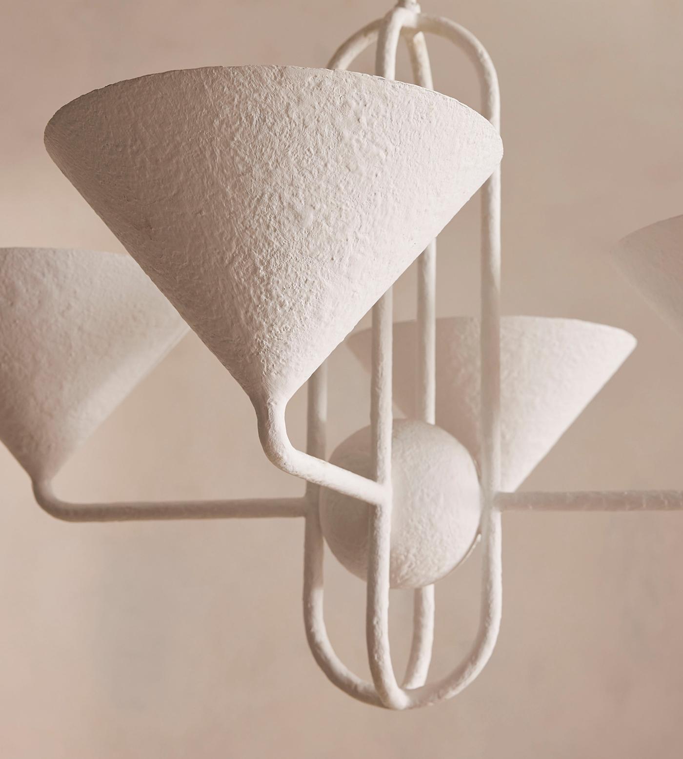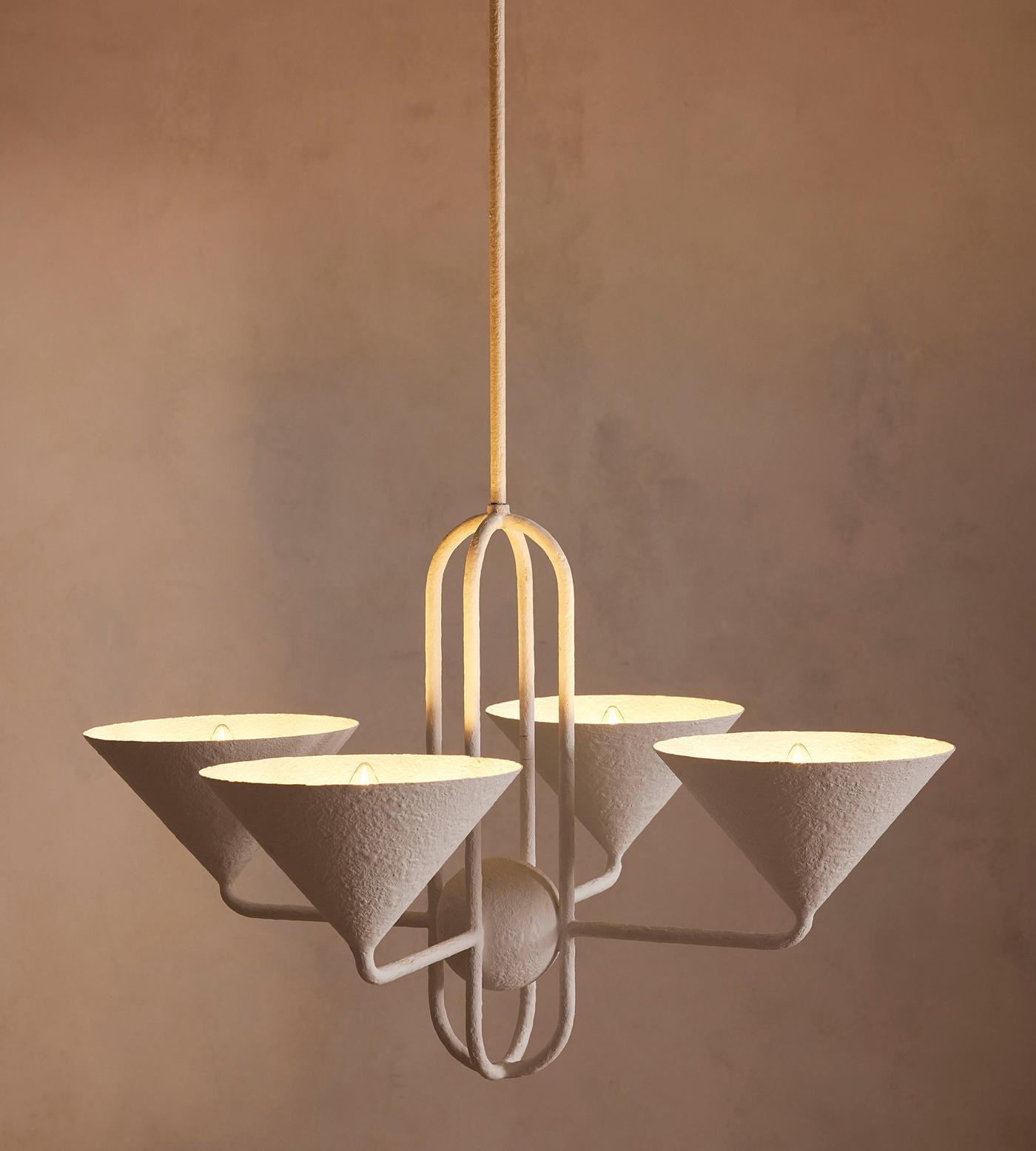 - Each chandelier is uniquely finished by hand, using a specialized technique that builds gradual layers of putty and water-based paint. This process creates a soft, organic texture and a nuanced, matte finish that feels both ancient and utterly contemporary. No two pieces are exactly alike, ensuring your lighting is as unique as your home.