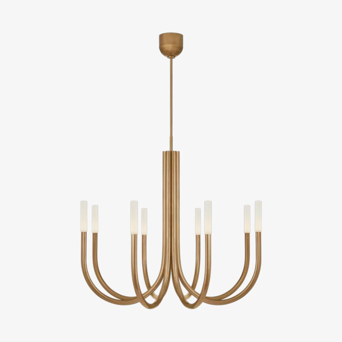 - Breathe a refined, contemporary luminosity into your home with the Rousseau Chandelier. Imagine the light play: the distinctive framework, rendered in your choice of sophisticated metal finish, provides a structured yet graceful silhouette. From this modern canvas, light cascades through your selection of premium glass. Opt for crystal for a soft, opalescent glow that minimizes glare and casts a gentle, inviting radiance. Choose frosted glass to introduce a subtle texture and a whisper of vintage-inspired character, where each tiny bubble catches the light uniquely. Or select pristine clear glass for maximum, brilliant illumination and a clean, timeless transparency that highlights the purity of the form.