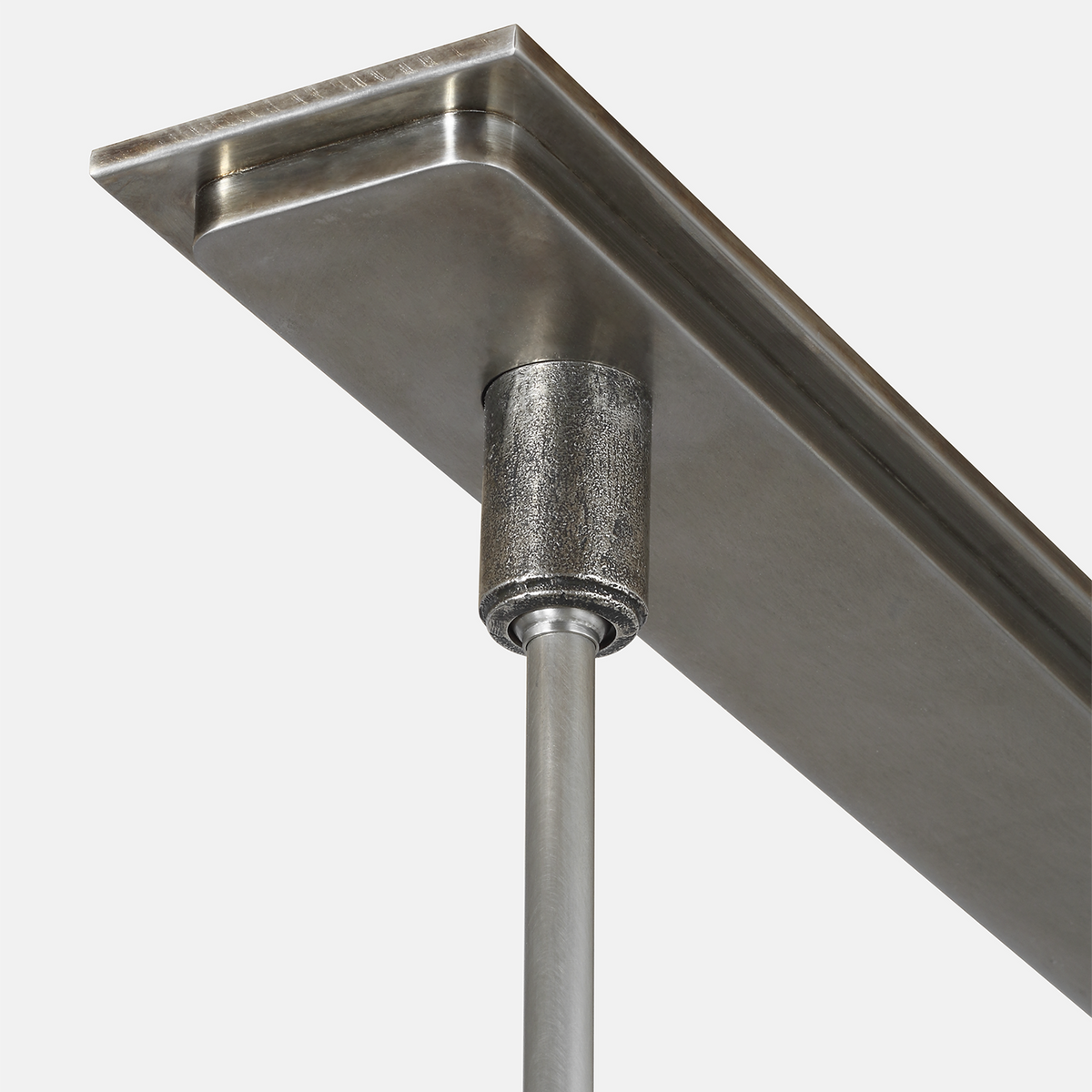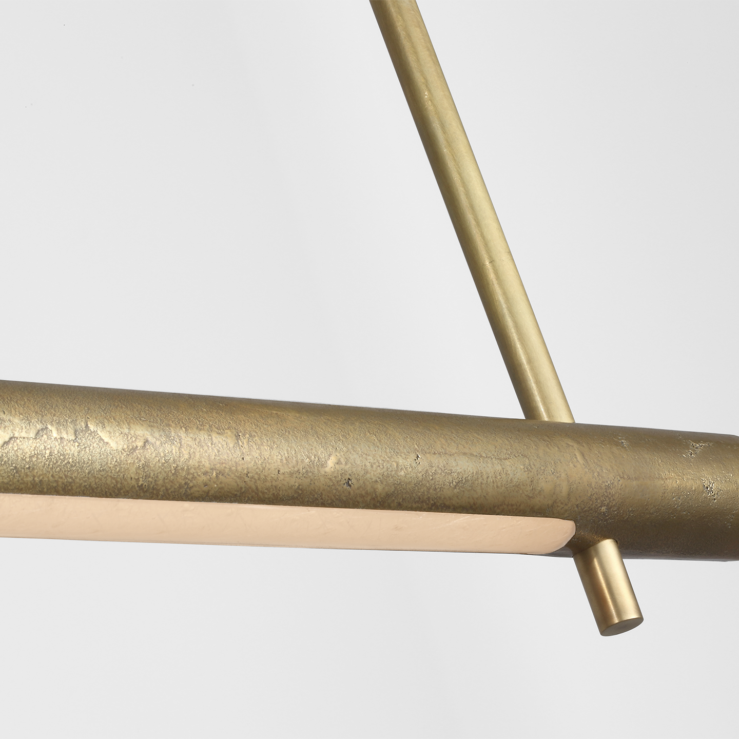 - Introducing the Stahl Linear Chandelier, where minimalist design philosophy meets the warm, timeless appeal of vintage brass. This is more than a lighting fixture; it is a statement of refined taste and a sculptural element that commands attention through its understated elegance. Designed for those who appreciate clarity of form and material honesty, the Stahl chandelier transforms functional illumination into an art form.