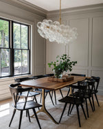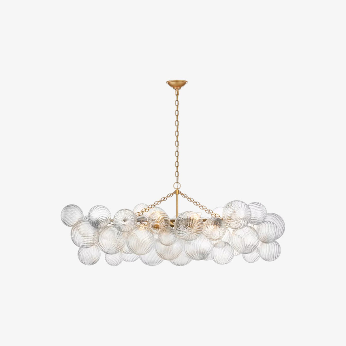 - Elevate your space with the Talia Linear Chandelier, where artisanal craftsmanship reimagines the classic glass globe. This stunning fixture transforms simple illumination into a captivating display of light and texture. Each orb is a unique piece of hand-blown glass, featuring delicate swirls that catch and shimmer the light from within.