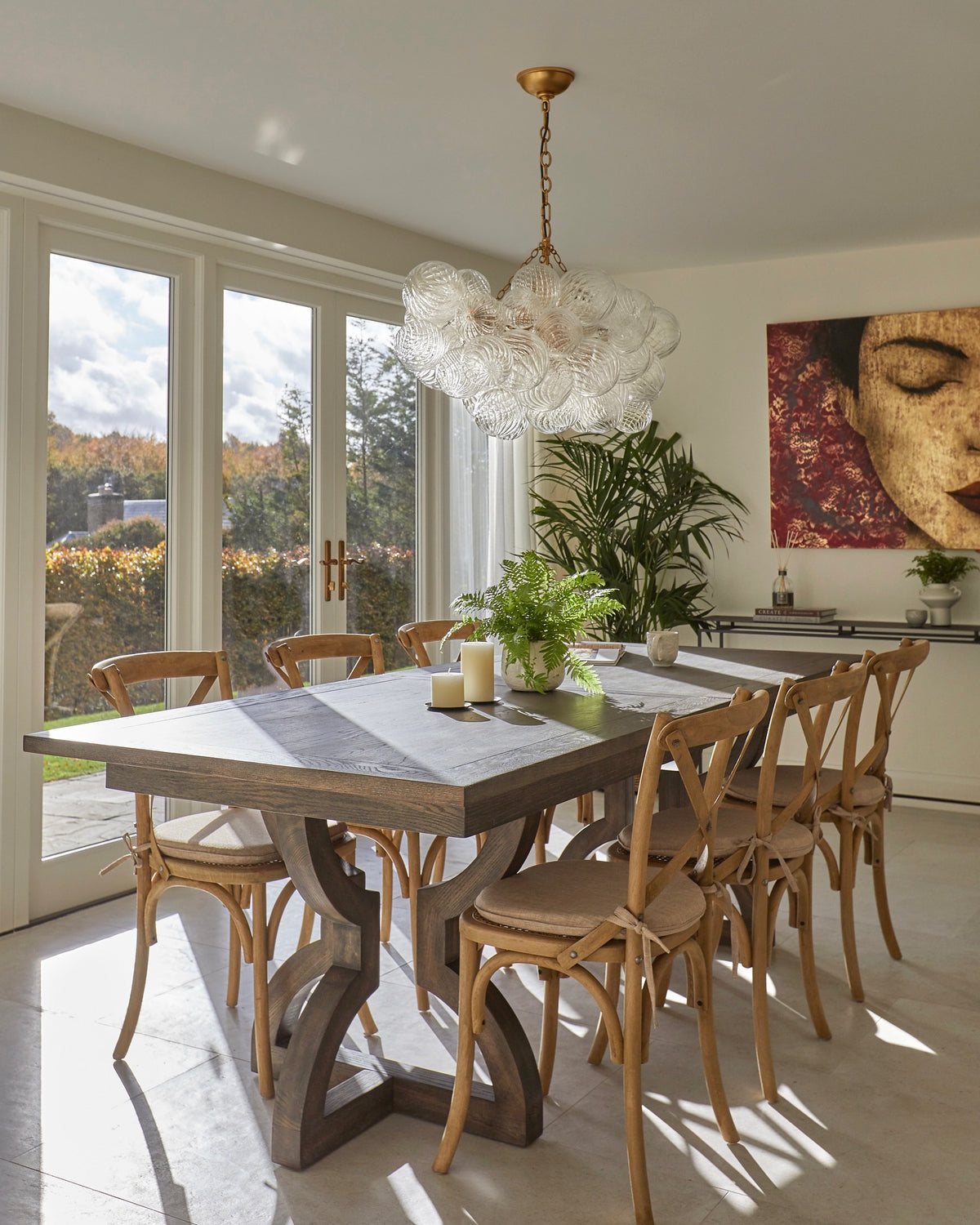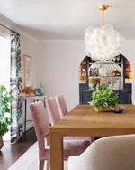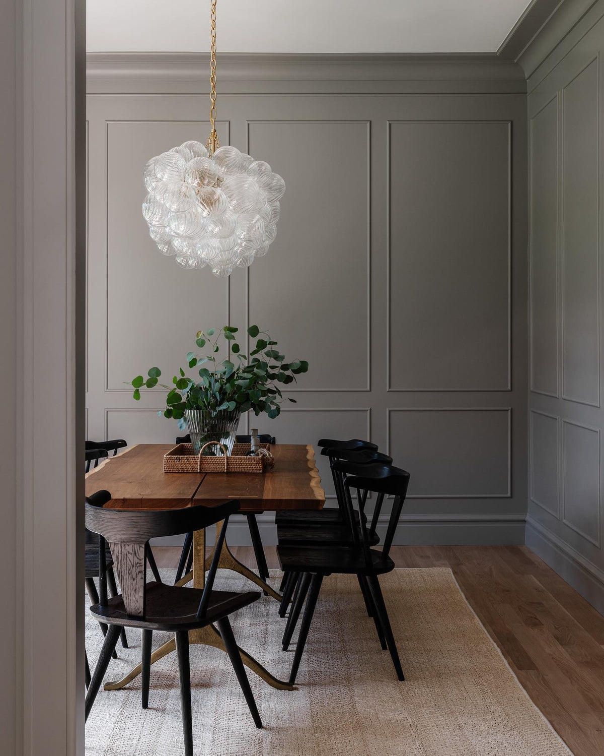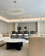 - Draped in elegant metal baskets, the multiple glass spheres create a sense of organic movement and playful sophistication. The Talia is more than a light source; it's a dynamic sculpture that adds a blend of sparkling transparency, soft rounded forms, and bright metallic accents to your interior design.