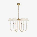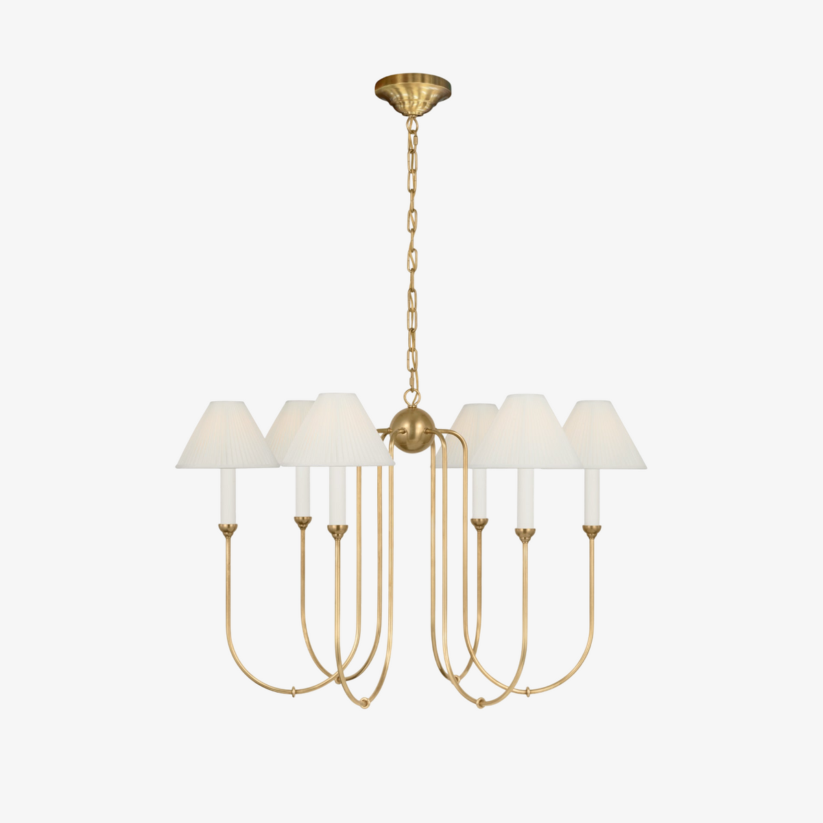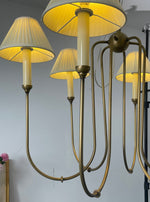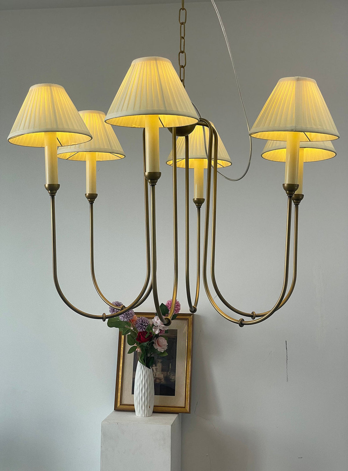 - Introducing the Violet Chandelier,the foundation of this chandelier is its solid brass structure, a material chosen for its inherent warmth and ability to develop a rich, living patina over time. The brass is finished with a delicate, lustrous sheen that catches the light even when unlit, highlighting the refined vintage character of the piece. From the central column to the elegantly curved arms, the metalwork showcases a symphony of polished curves and symmetrical precision, a clear nod to artisanal craftsmanship.