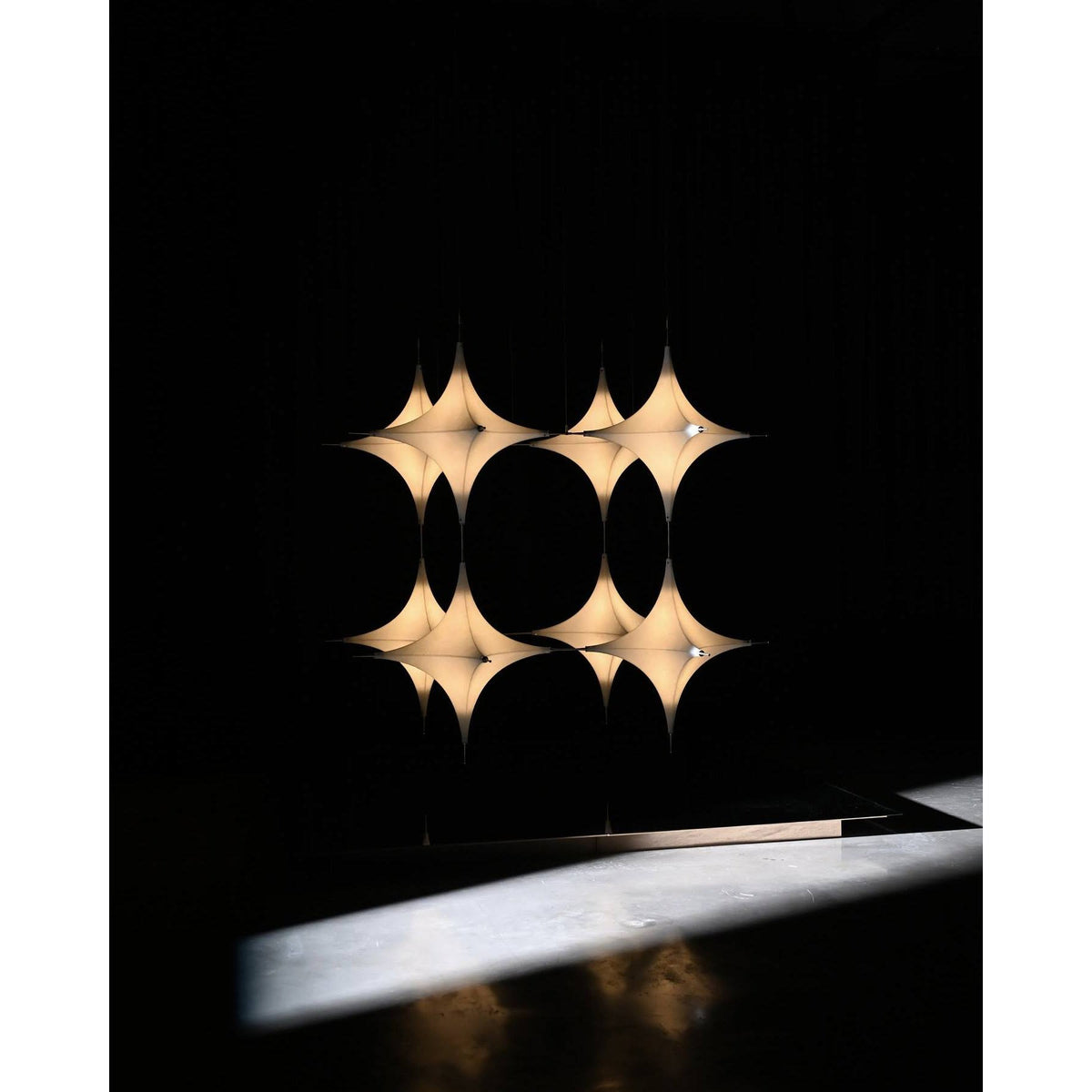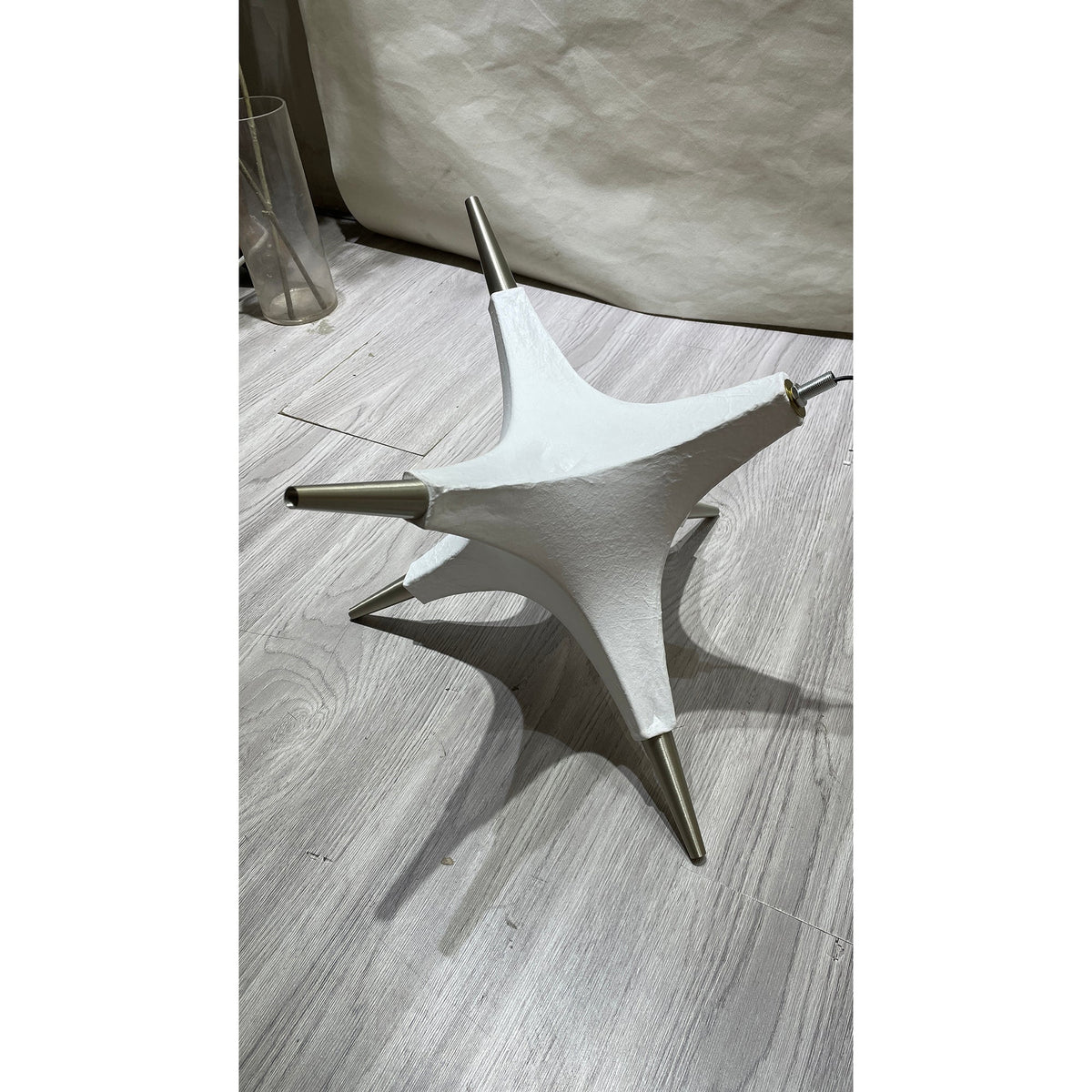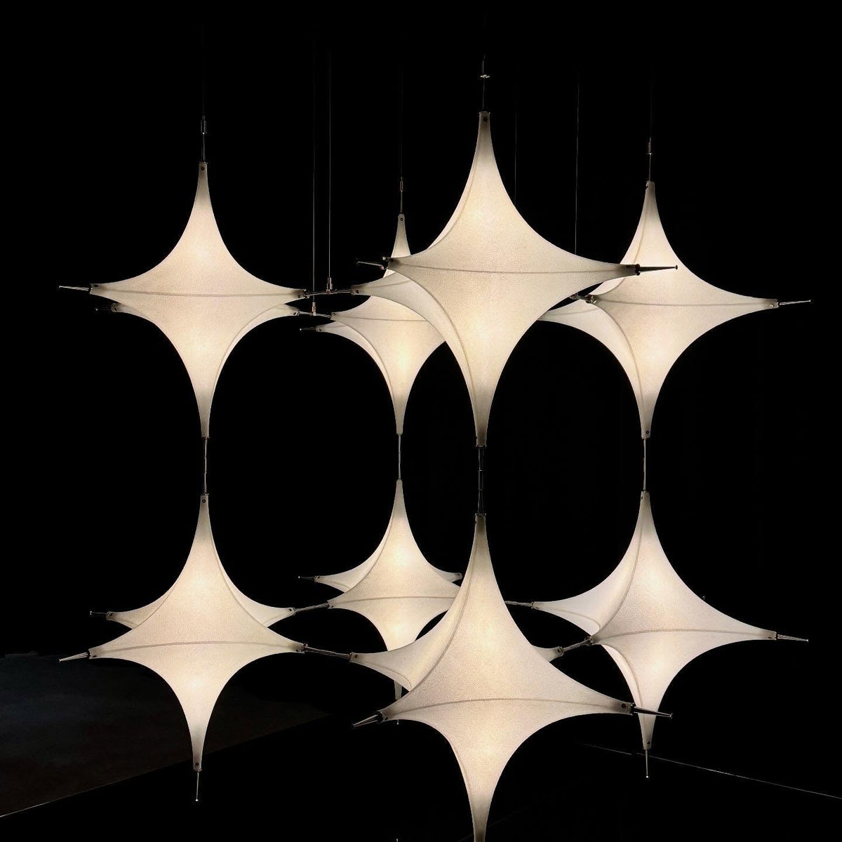 - Make a bold statement with the Polar Chandelier, a masterpiece where rugged industrial iron meets soft, diffused light. This stunning fixture combines a robust, star-shaped geometric frame with a delicate imitation silk shade, creating a warm and inviting ambiance perfect for any modern home or chic commercial space.