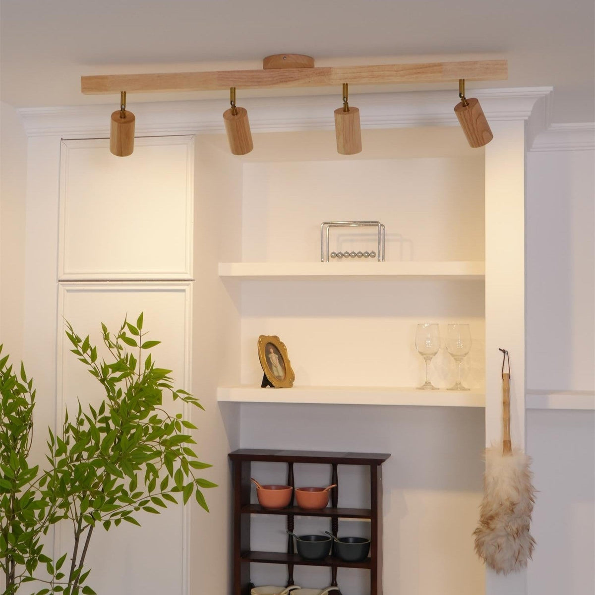 - Illuminate your home with the Ursa Wooden Track Lighting, a stunning blend of natural beauty and functionality. Crafted from authentic log wood, this fixture offers a warm, rustic aesthetic that effortlessly enhances any décor. Perfect for closets, hallways, wall décor, or vanities, the Ursa track lighting provides both style and practicality for your lighting needs.