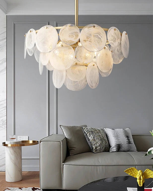 Specifications1. Fixture Type: Chandeliers2. Style: Nordic & Modern 3. Body Finishes: Brass 4. Shade Finishes: White 5. Main Material: Glass (Shade) | Brass (Body) | Brass (Canopy) 6. Scenes to be Used: Indoor Only (IP20) 7. Light Source Base: E12 | E14 8. Bulb Included: Yes 9. Number of Bulbs Required: 9 / 15 10. Kelvin Range: 3000K 11. Dimmable: Compatible with Dimmer Switch 12. Remote Control: No 13. Voltage: AC 110V-240V 14. Warranty: Two Years 15. Assembly Required: Yes 16. Installation Required: Yes 17. Sloped Ceiling Compatible: Yes 18. Adjustable Length: Yes 19. Wiring: Hardwired 20. Length of Pole: 11.8 inches | 30cm 21. Compatible with Household Dimmer Switch: Yes 22. Product Care: Wipe Clean with Soft & Damp Cloth 23. Mode of Transport: Disassembled for Shipping |