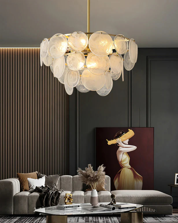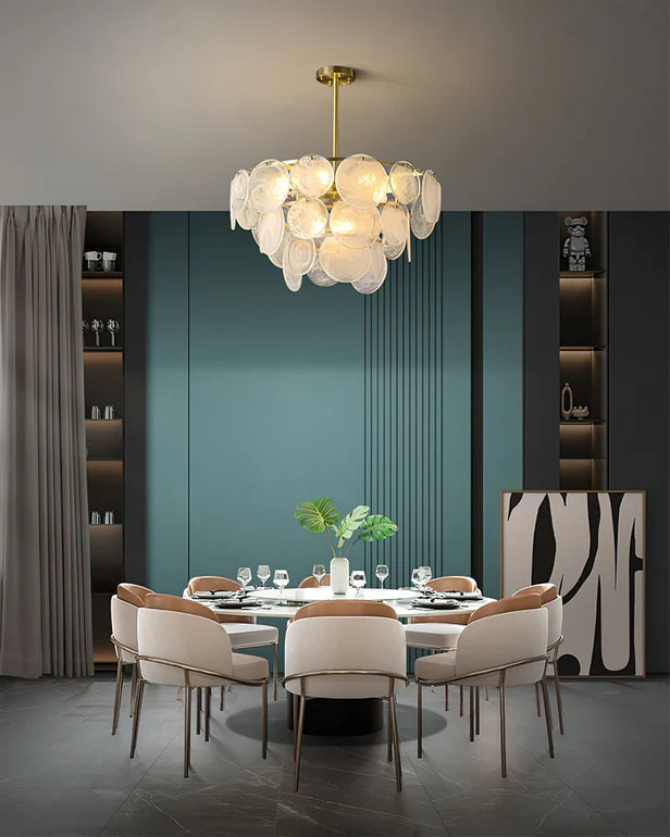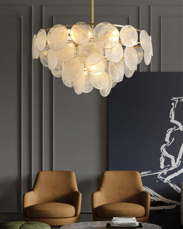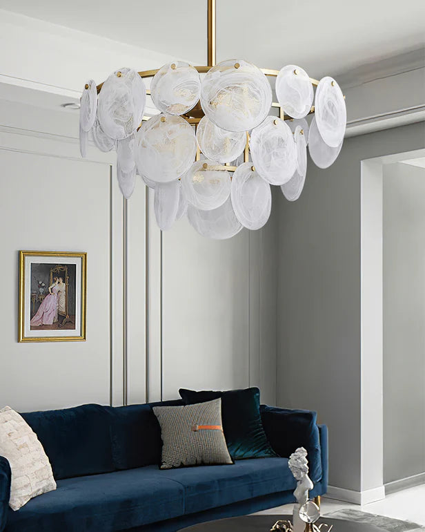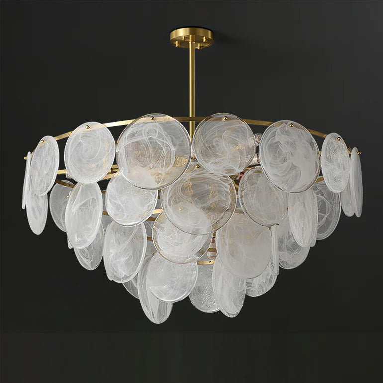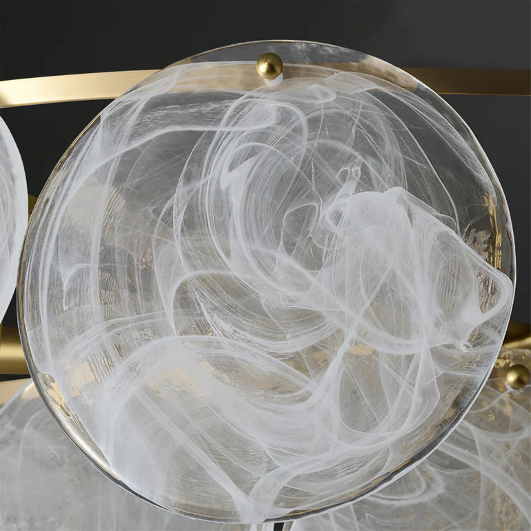 - A captivating blend of artistry and elegance, this Murano Glass Mist Chandelier is a true masterpiece. Its round glass shade, reminiscent of smoke captured in glass, exudes a mysterious charm. The luxurious, cast brass body adds a touch of opulence to any space. This stunning chandelier is a perfect choice for those seeking a unique and sophisticated lighting solution.