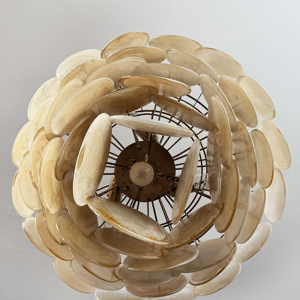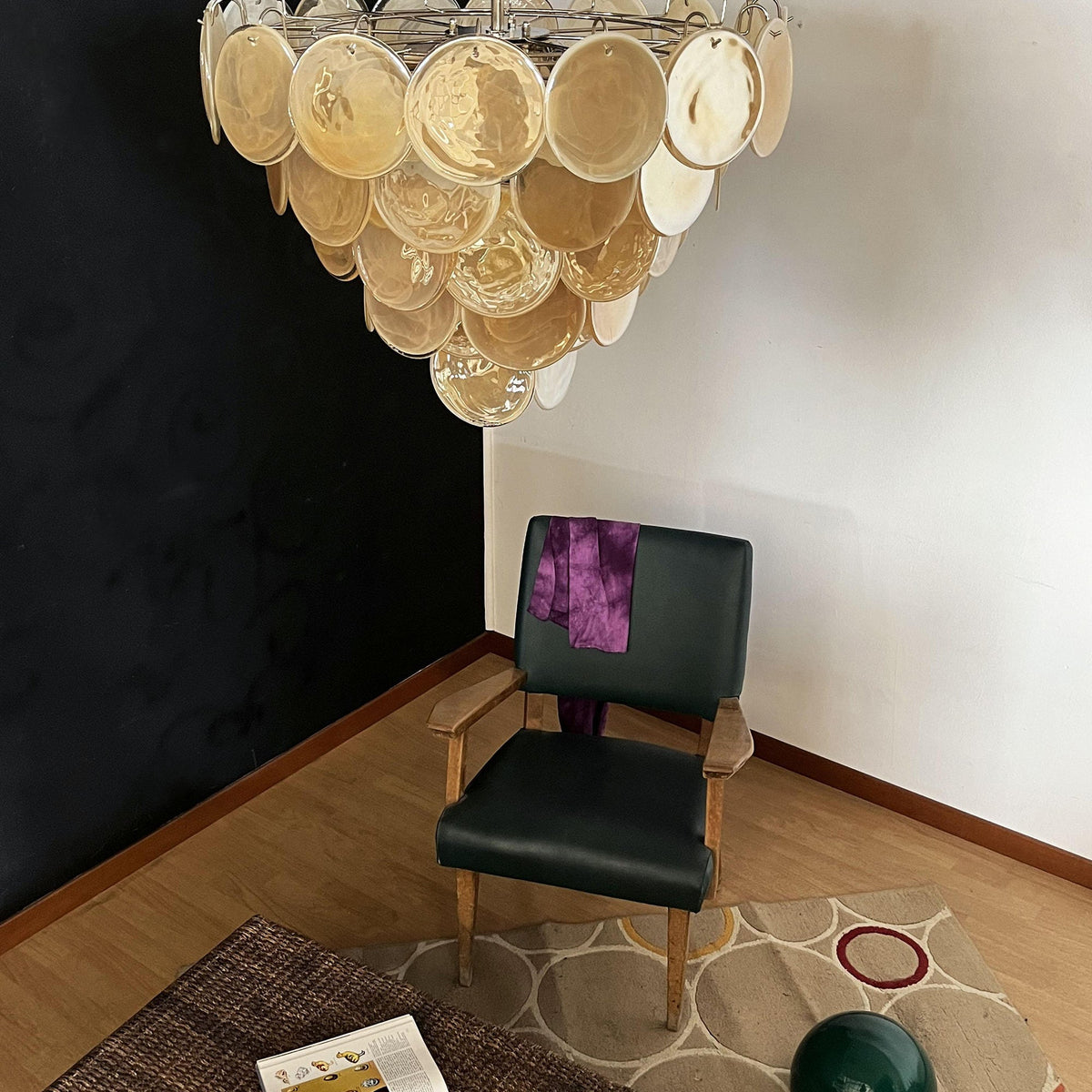 - Transform your home into a gallery of light with the breathtaking Murano Gold Disc Chandelier 57. Meticulously crafted, this piece is more than a light fixture—it's a statement of artistry and sophisticated design, destined to become the captivating centerpiece of any room.