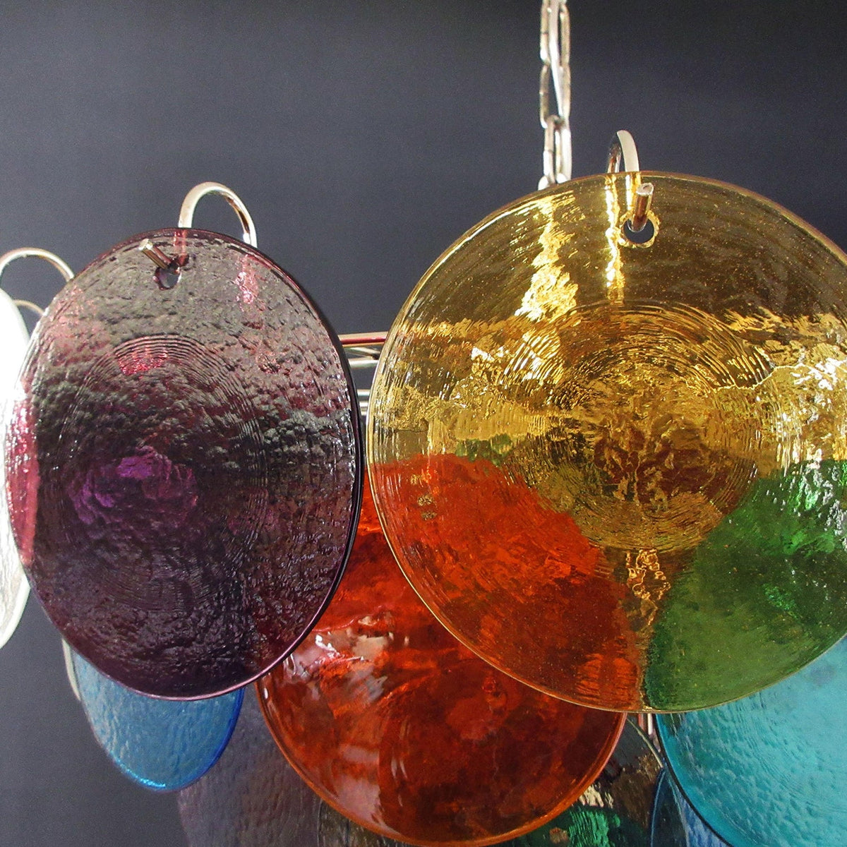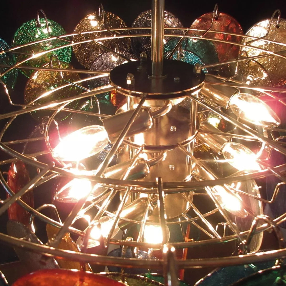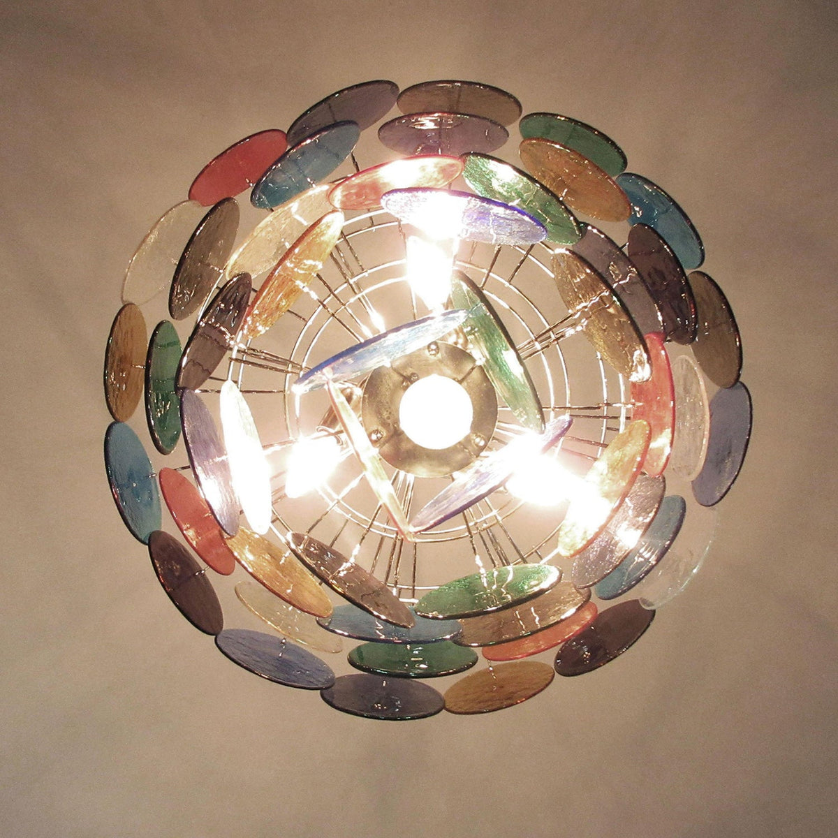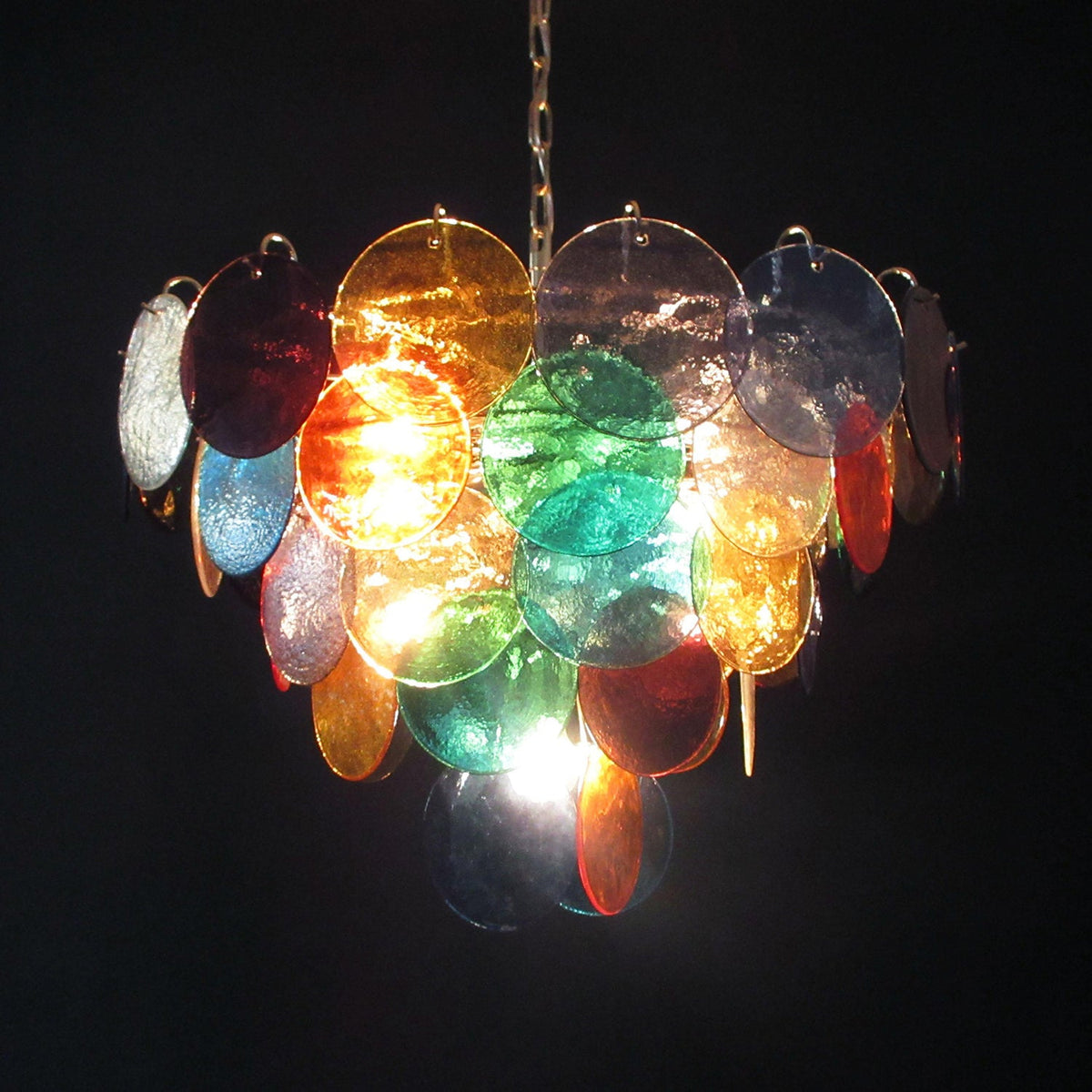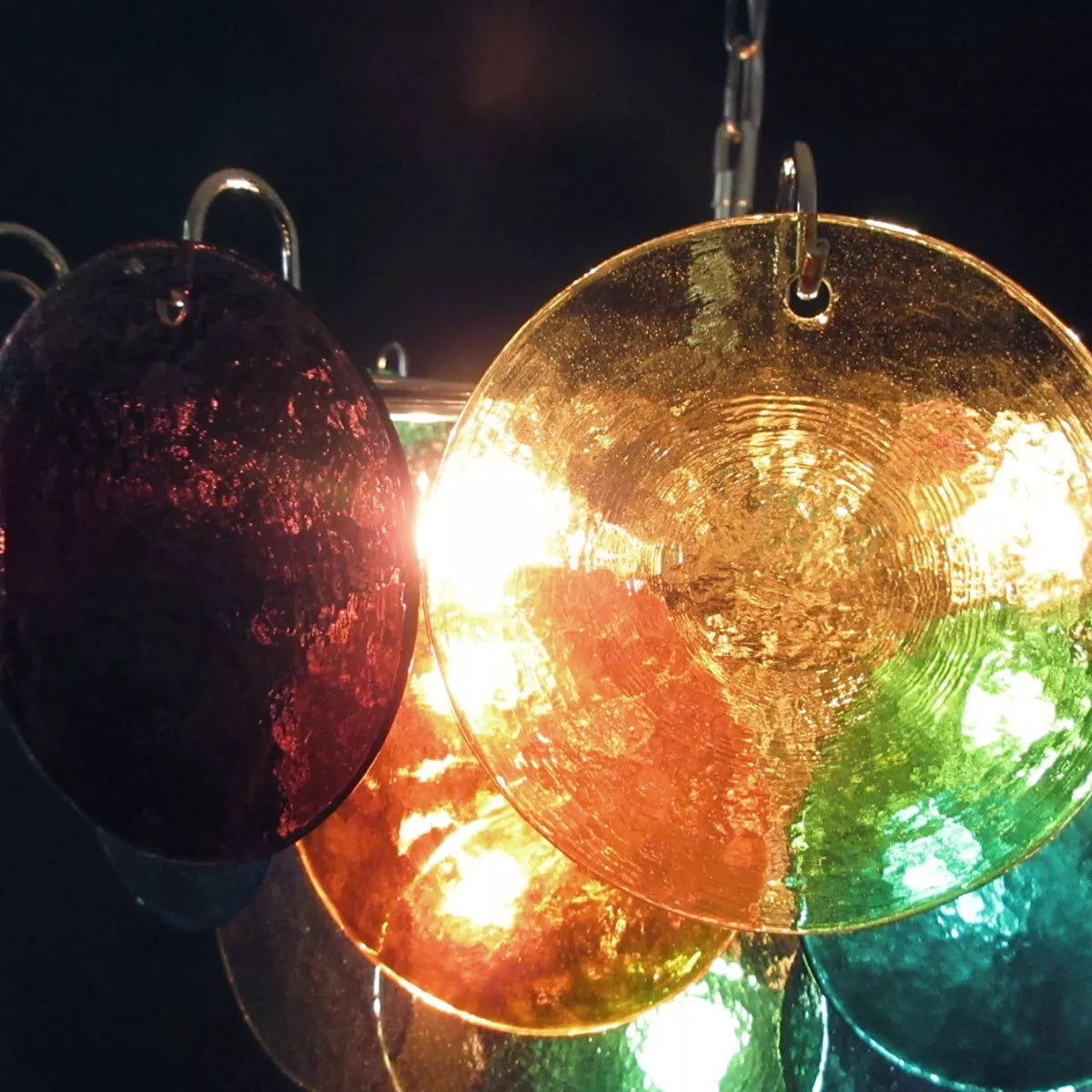 - Transform your space into a gallery of light with our breathtaking Murano Multicolored Disc Chandelier 57. A masterpiece of artisan design, this fixture is more than a light source—it's a captivating work of art that commands attention and sparks conversation.