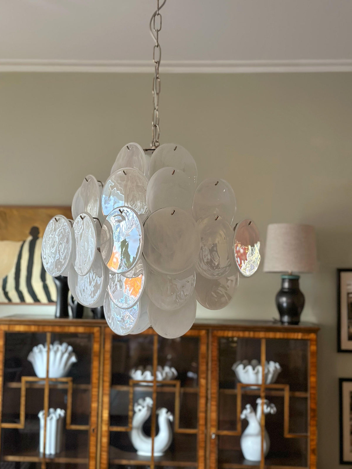 Murano White Disc Chandelier 36