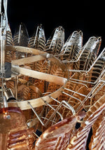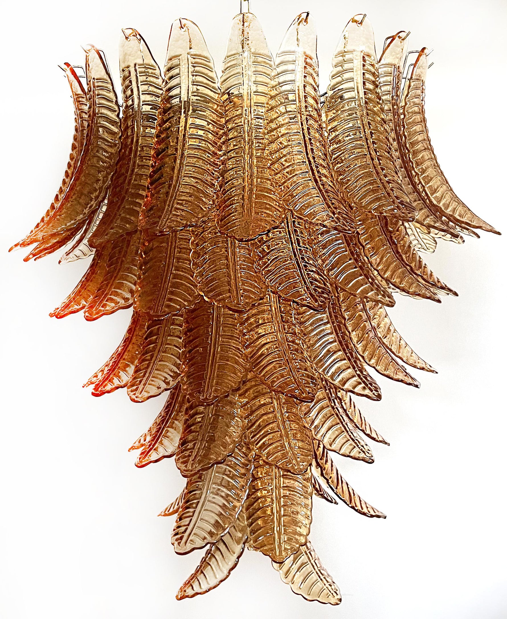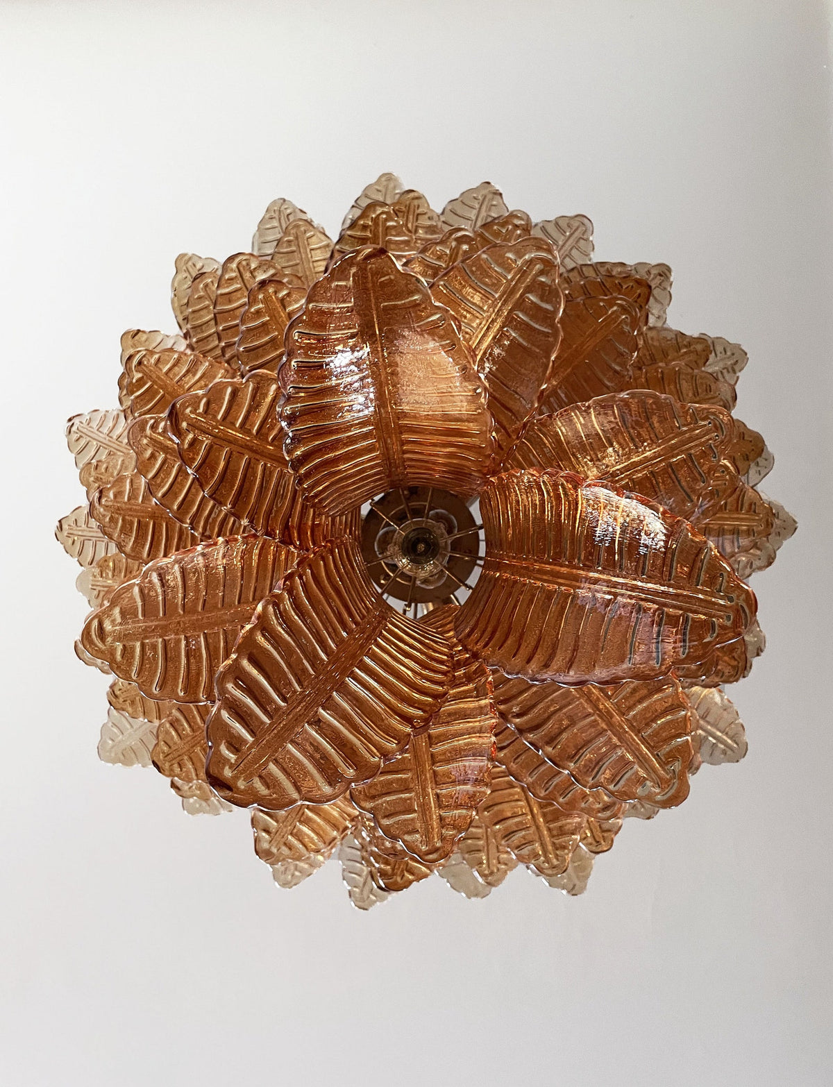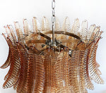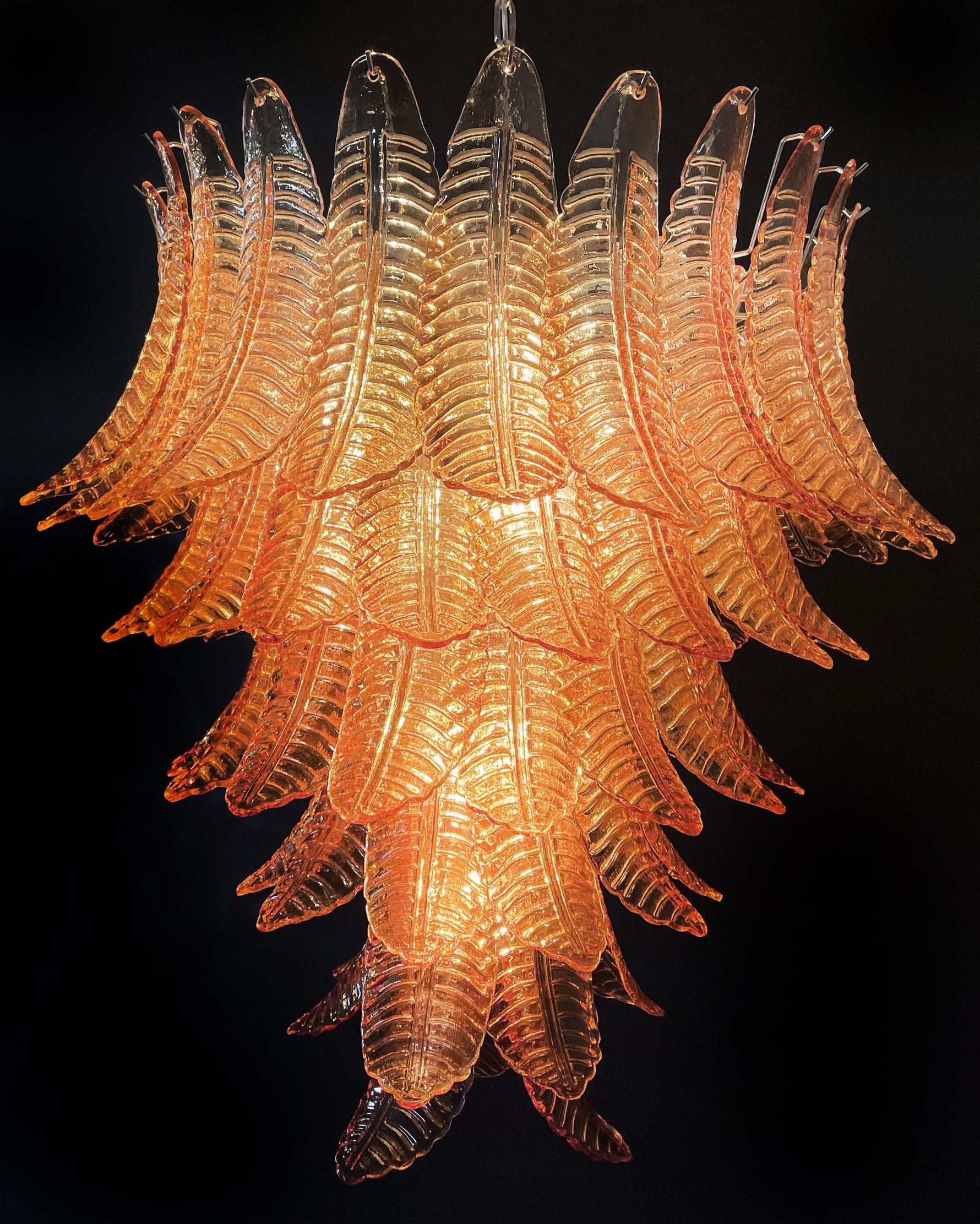- Imagine a cascade of 75 individually crafted amber glasses, each one a unique work of art. The Felci Murano Glass Chandelier commands attention, casting a warm, golden, and inviting glow that transforms any room into a palatial setting. The rich amber hue evokes a sense of timeless elegance, reminiscent of a Venetian sunset, and adds a touch of sophisticated warmth to grand entrances, formal dining rooms, and luxury living areas.