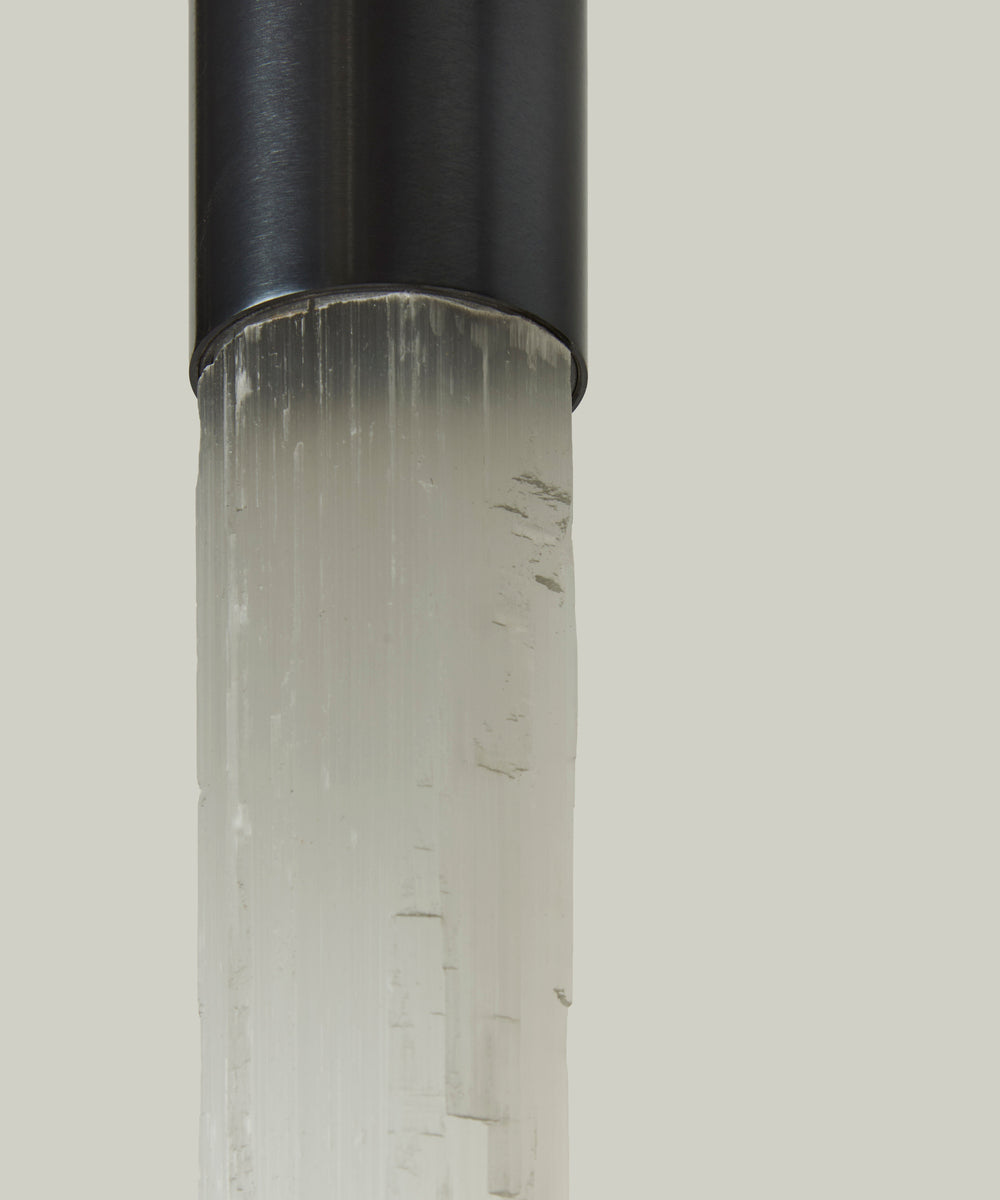 - Harness the serene power of crystal and light. The Selene Maxi Pendant Lamp is more than a lighting fixture; it is a handcrafted sculpture that brings the raw, captivating beauty of nature directly into your space. Born from a project to merge illumination with the apotropaic qualities of Selenite crystal, this lamp is a statement piece that radiates tranquility and sophisticated artistry.