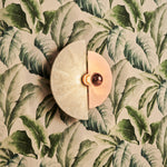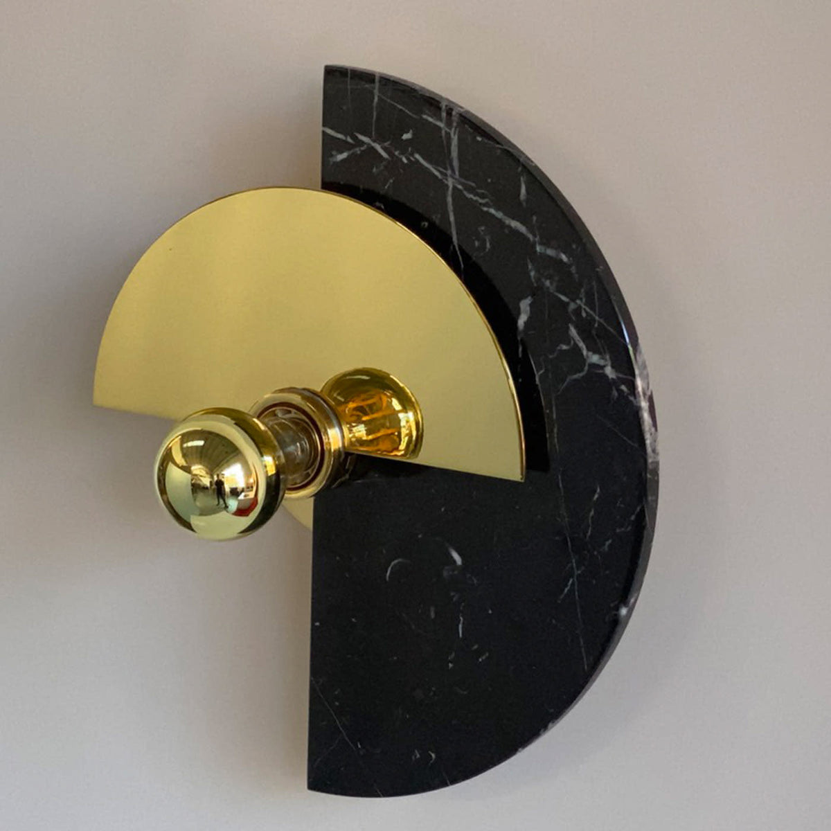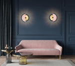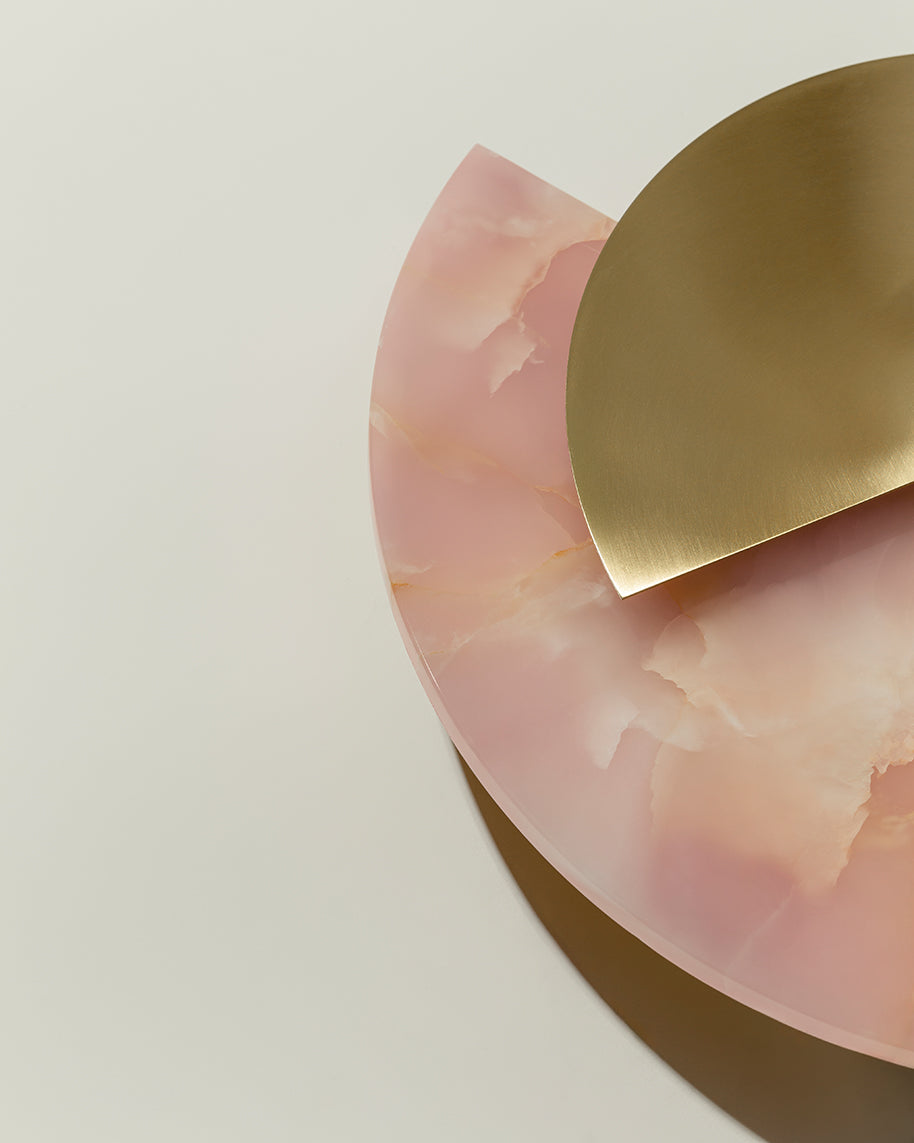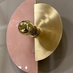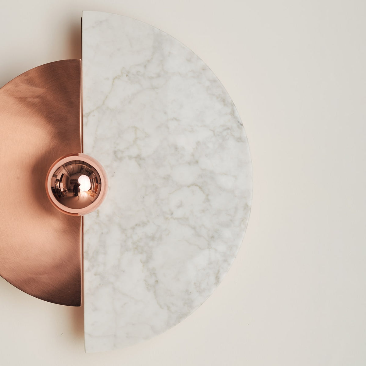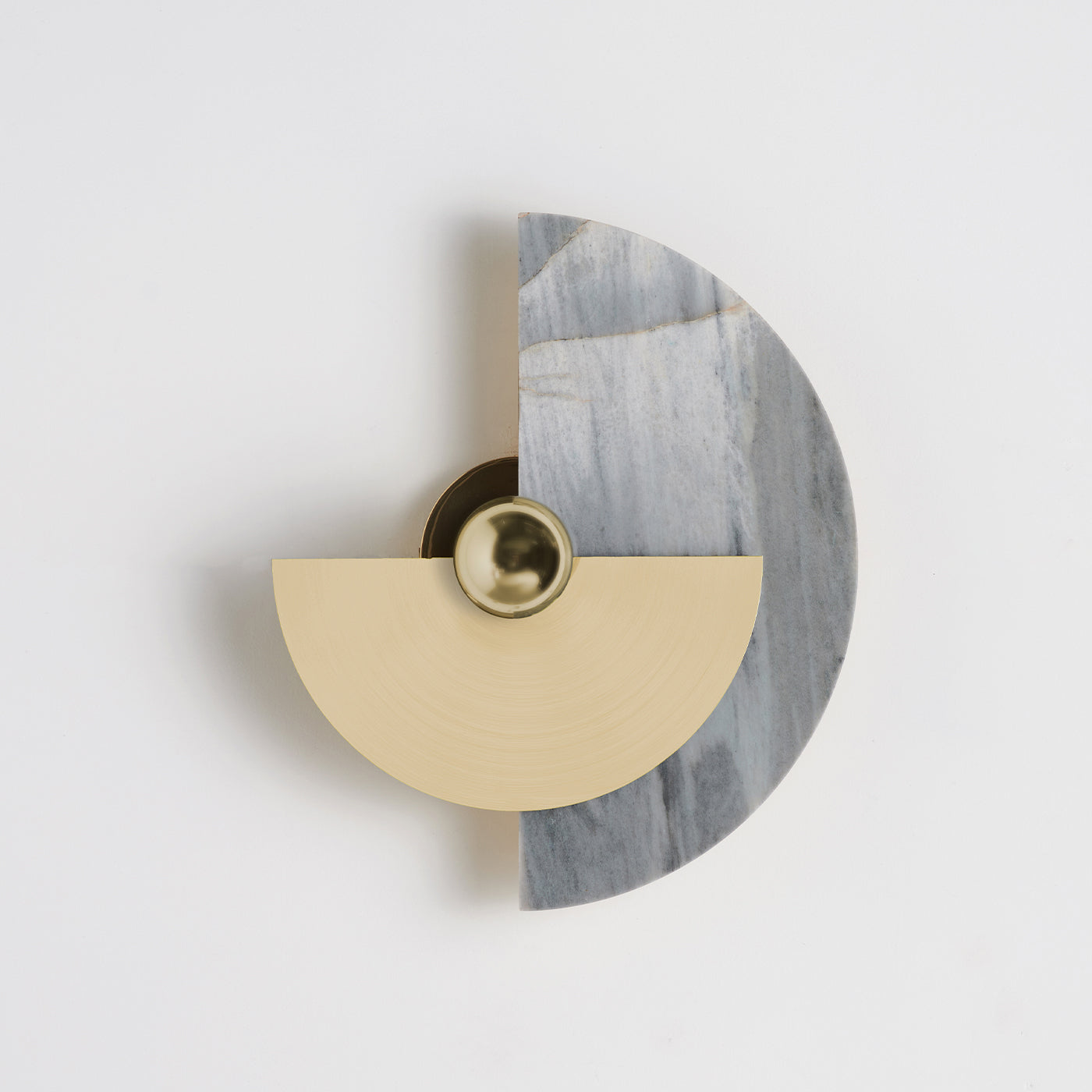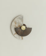 - Crafted for sophistication, the sconce features a lustrous brass structure and disc, paired with your choice of a veined alabaster or marble disc. At its heart, a warm-glow bulb with a golden cap enhances the rich tones of the materials and projects a soft, inviting light. The result is a radiant, sun-like illumination that bathes your wall in warm colors, perfect for creating a cozy and luxurious atmosphere in bedrooms, living rooms, or hallways.