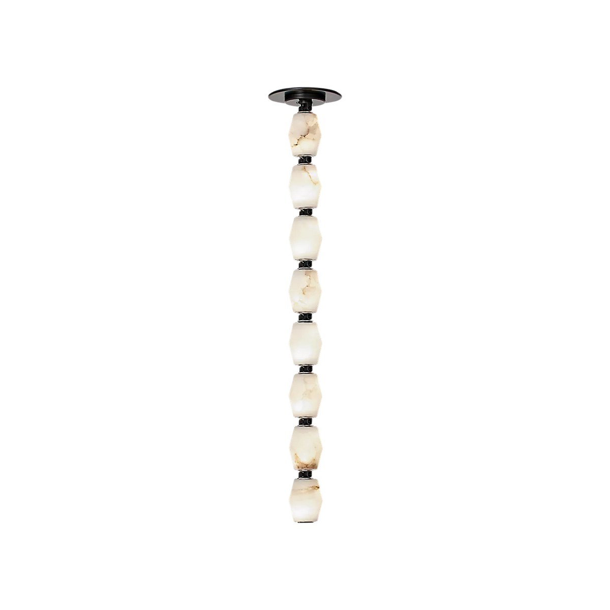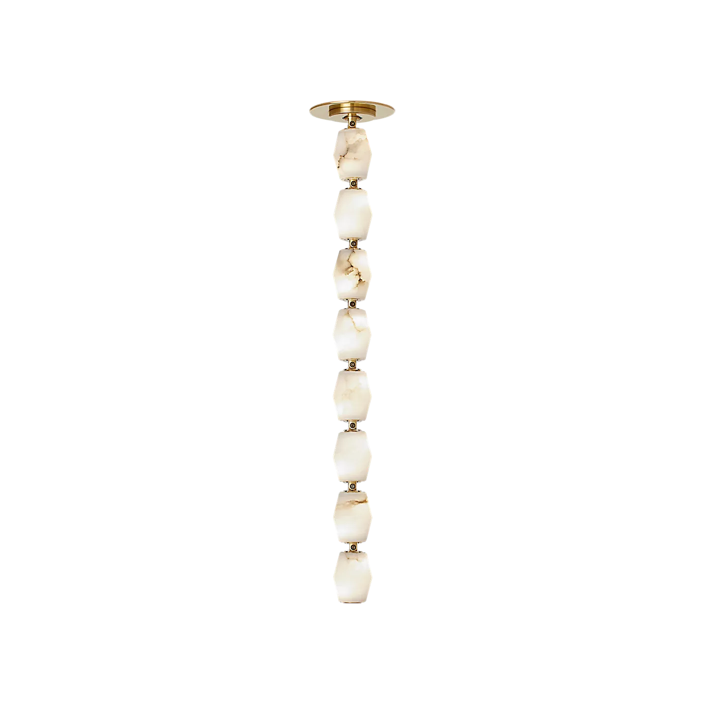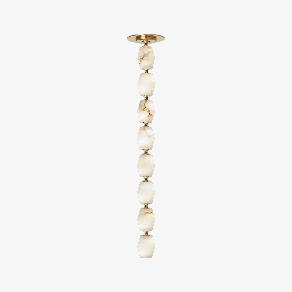 - At the heart of The Collier Alabaster 24 Pendant Lamp's radiant presence lies its magnificent, solid faceted Alabaster. Unlike thinly coated or composite materials, the solid alabaster possesses a profound depth and a unique, organic veining that ensures no two chandeliers are exactly alike. The hand-faceted cuts are not merely decorative; they are precisely engineered to catch and refract light from every angle, creating a dynamic interplay of soft luminance and gentle shadow that brings the entire structure to life.