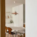 Regardless of how the light is installed or the light source used, the Laditka Pendant Lighting is completely glare-free with the help of its sandblasted glass diffuser. This pendant light is part of distinctive three-shade system, in which the metal shades are painted to ensure comfortable, uniform light distribution that is mainly directed downwards. The light can be aimed where it's most needed while creating soft shadows.