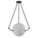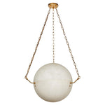 - The spherical shade emits a soft, gentle, and warm light, transforming harsh illumination into a comfortable and ambient atmosphere. The alabaster-toned finish provides a beautiful diffused effect, minimizing glare and creating a serene environment perfect for living rooms, dining areas, bedrooms, and entryways.The Leida lamp showcases a striking geometric aesthetic. The spherical alabaster shade is gracefully suspended by three elegant brass chains, connected with ingeniously designed brass fittings.