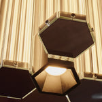 - Each piece is a composition of flawless planar glass hexagons, connected by a slender bridge of polished aluminum. The effect is a play of weightlessness and structure, of reflected brilliance and transmitted warmth.