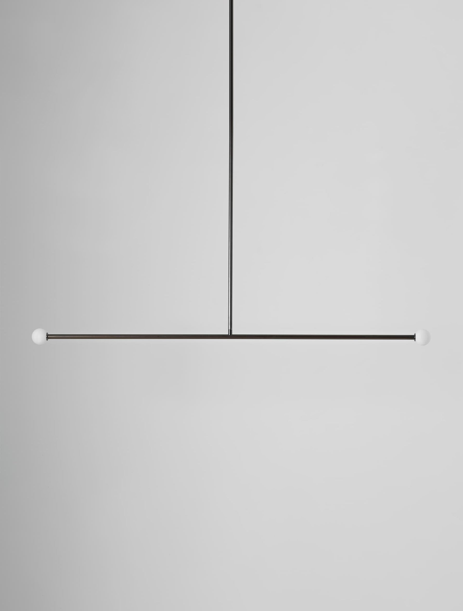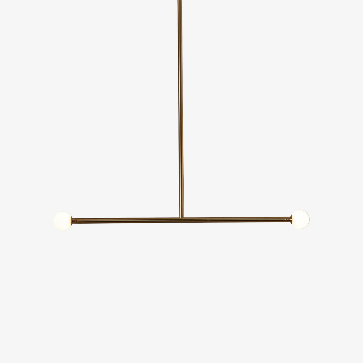 - T2 Pendant Lamp's defining feature is a clean, linear structure forming a unique "T" shape. This striking silhouette offers a bold, modern geometric statement while maintaining a beautifully simple profile. The Brass T2 doesn't just illuminate; it becomes a captivating visual focal point, adding a touch of artistic flair to any room.