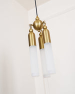 - Elevate your space with the Tassel Pendant Lamp, a stunning lighting fixture that blends artistic design with premium materials. Crafted from copper aluminum, its sleek structure features spherical and beaded accents, along with three elegant columns topped with acrylic shades for a layered, sophisticated look.