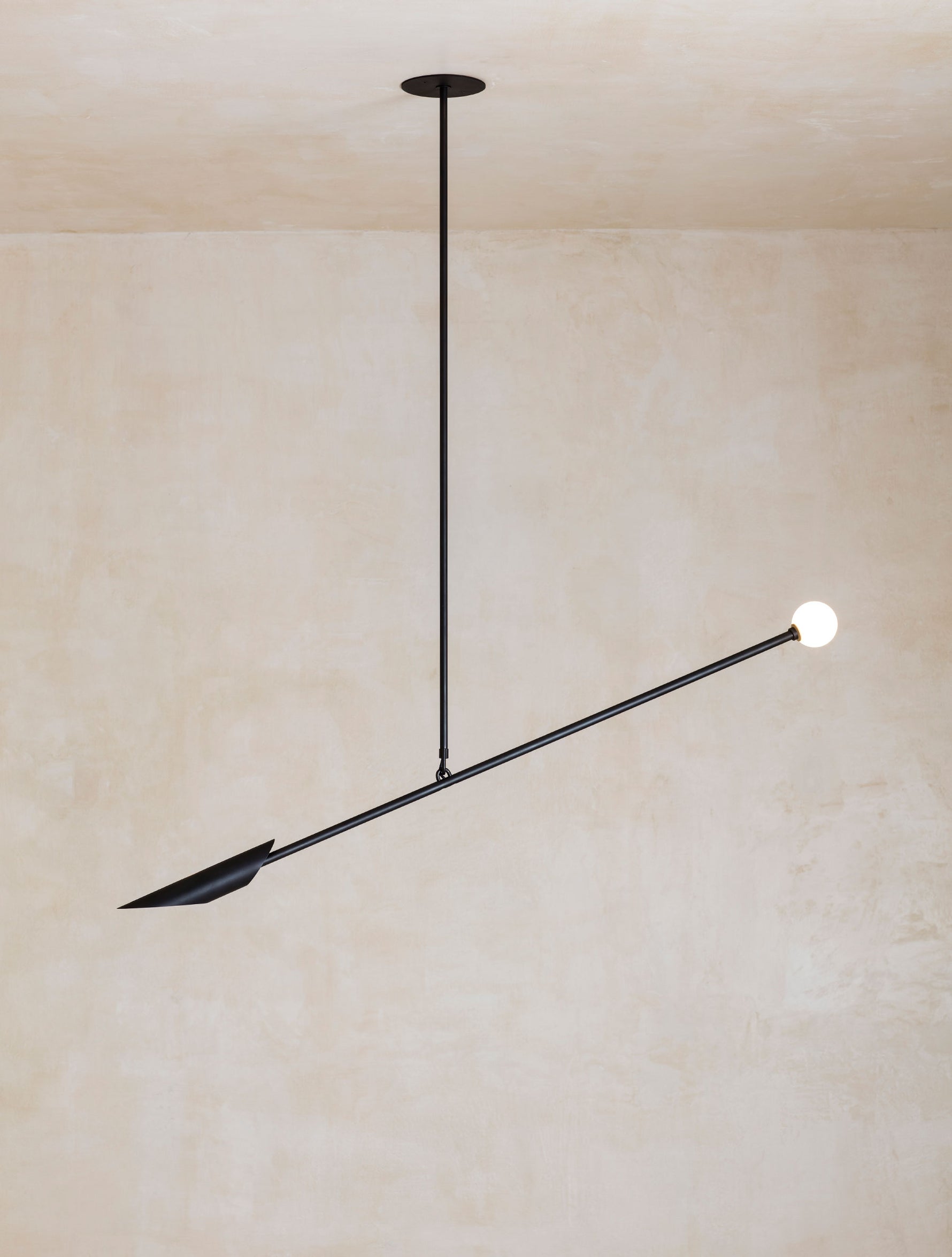 - Its striking, arrow-like silhouette creates a powerful artistic tension, defined by clean, sleek lines that command attention. The warm, brushed brass components provide a calming texture and a soft metallic sheen, showcasing a refined and durable finish built to last.