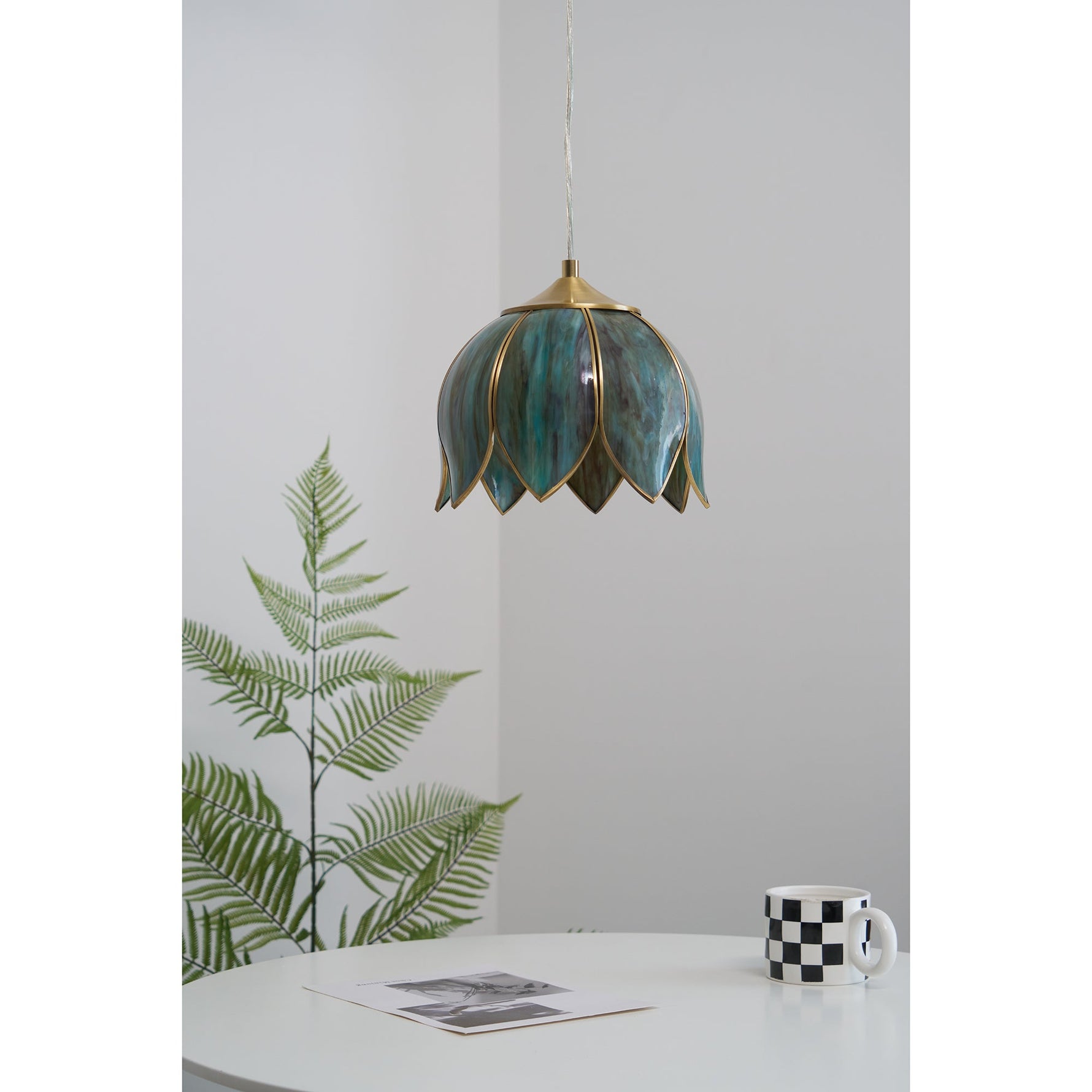 - Bask in the warm, radiant glow of the Yukiko Pendant Lamp, where the enduring strength of metal dances with the delicate beauty of light. This isn't merely a lighting fixture; it's a carefully sculpted piece of functional art, designed to become the soulful centerpiece of your room. The Yukiko lamp tells a story of contrast and harmony, blending the robust, vintage charm of solid brass with the ethereal, modern elegance of a uniquely formed glass blossom.