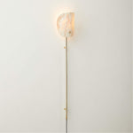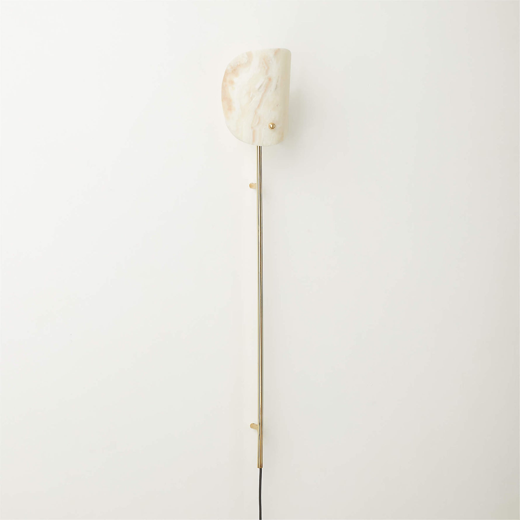 Introduce an element of organic artistry to your space with the Fold Onyx Plug-In Wall Sconce. This tall, sculptural light features a shade meticulously hand-carved from a single block of solid onyx, which glows softly when illuminated. Paired with an golden torch, this plug-in sconce offers a warm, ambient light and a timeless design that grows more characterful with age.