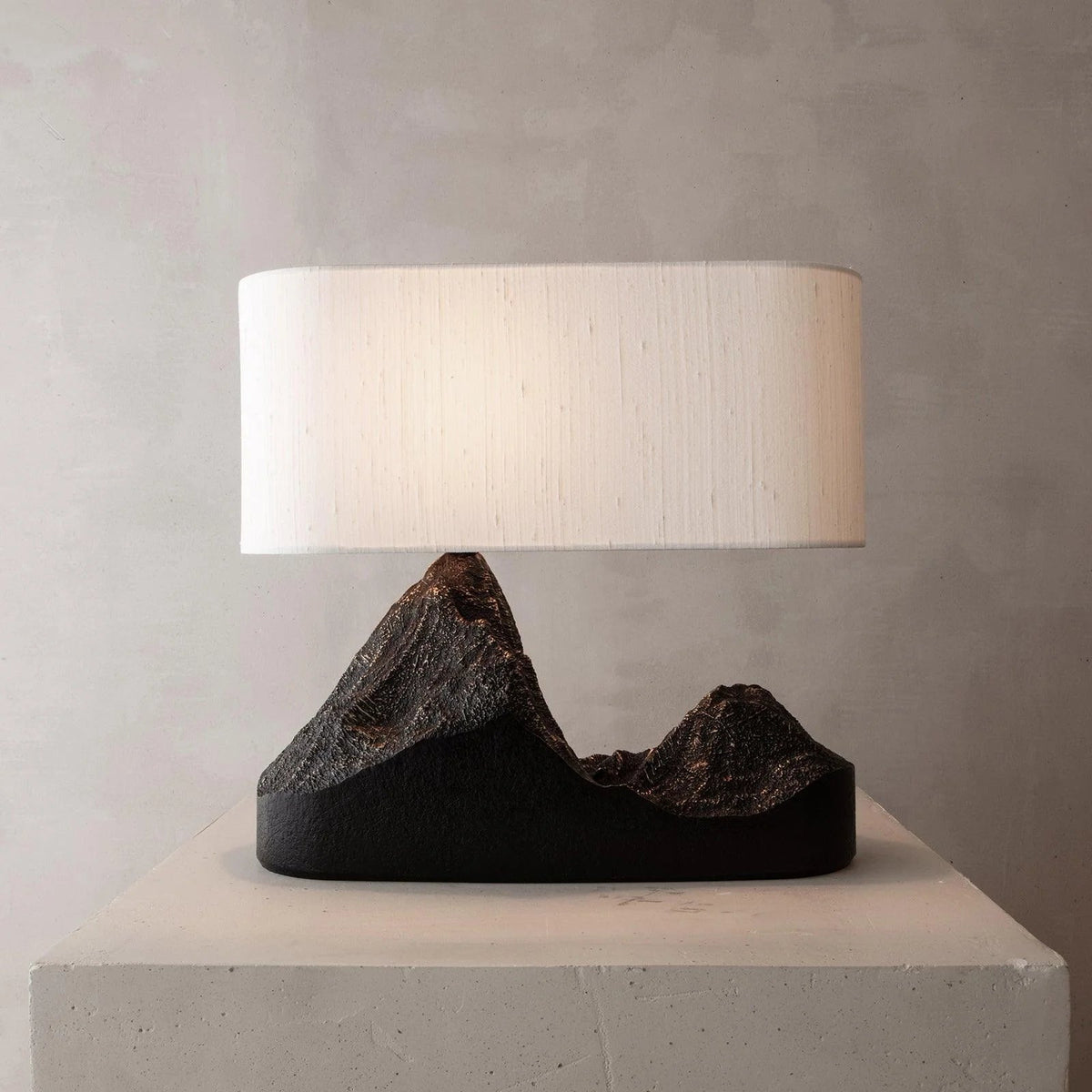 - The Tam Hills Table Lamp's base made by resin, the shape is modeled after a hill. The shade made of white fabric has good light transmission without making the light too dazzling, every part of the lamp has an excellent texture.