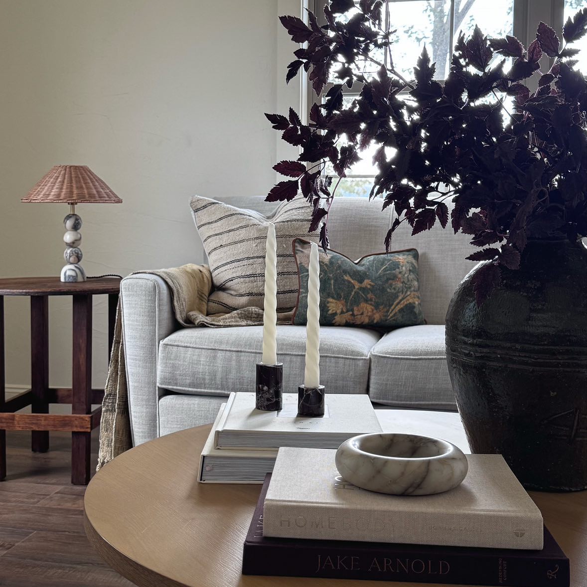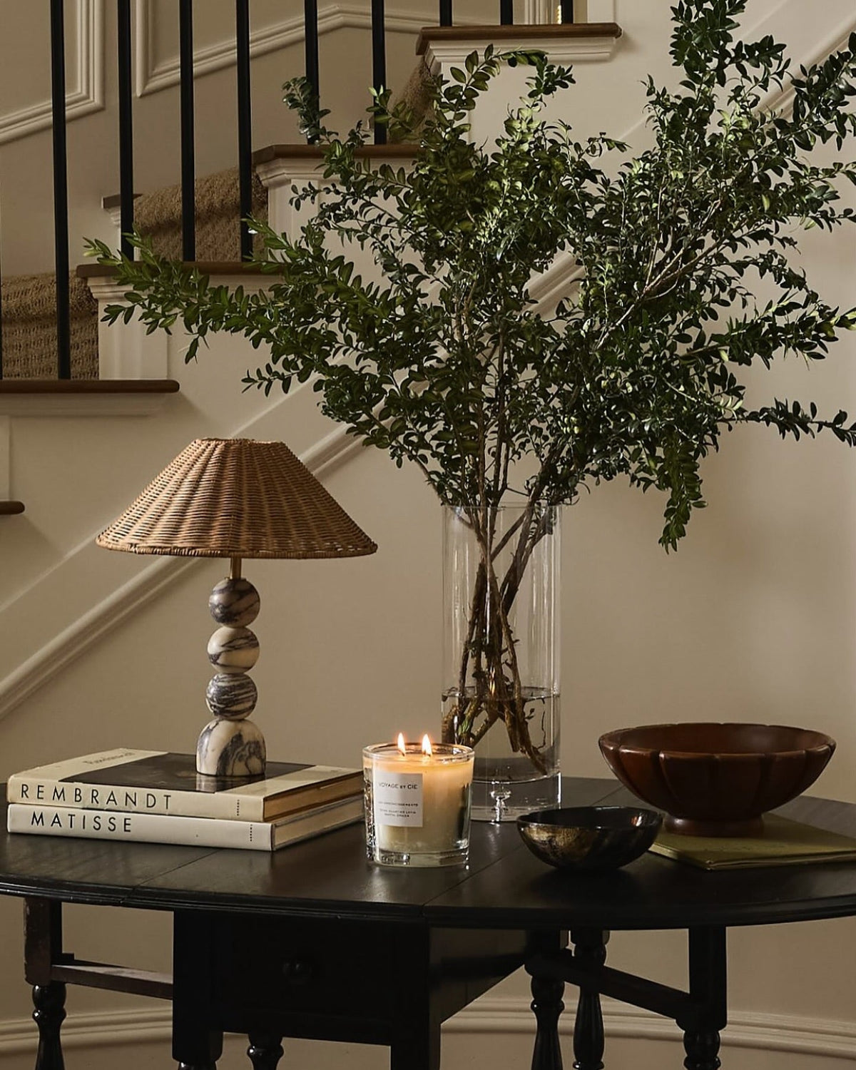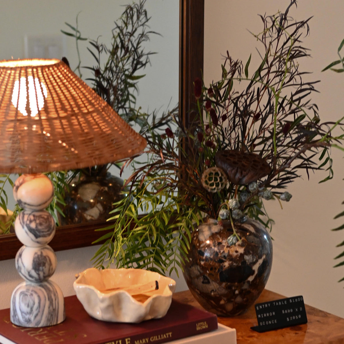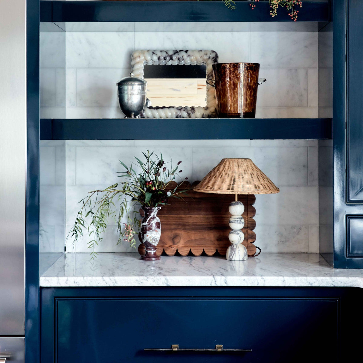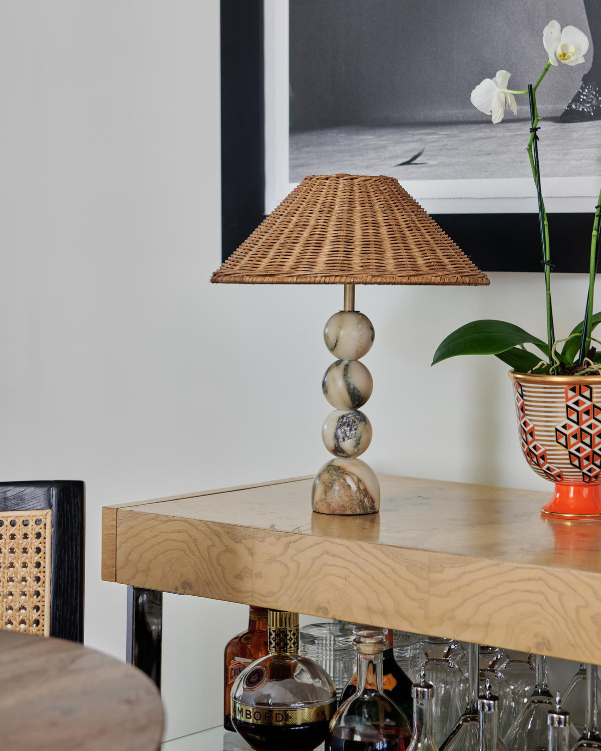 - Carroll Table Lamp is designed to be the perfect finishing touch for your desk, countertop, or side table, this lamp combines luxury and functionality in one exquisite piece. The solid Calacatta Viola Italian marble base exudes sophistication, showcasing its unique veining and rich, natural tones. Paired with a hand-woven rattan shade, the Carroll brings warmth and texture to any room, creating a harmonious balance of materials. Its durable construction ensures it will hold its beauty for years to come, making it a cherished addition to your home or office.