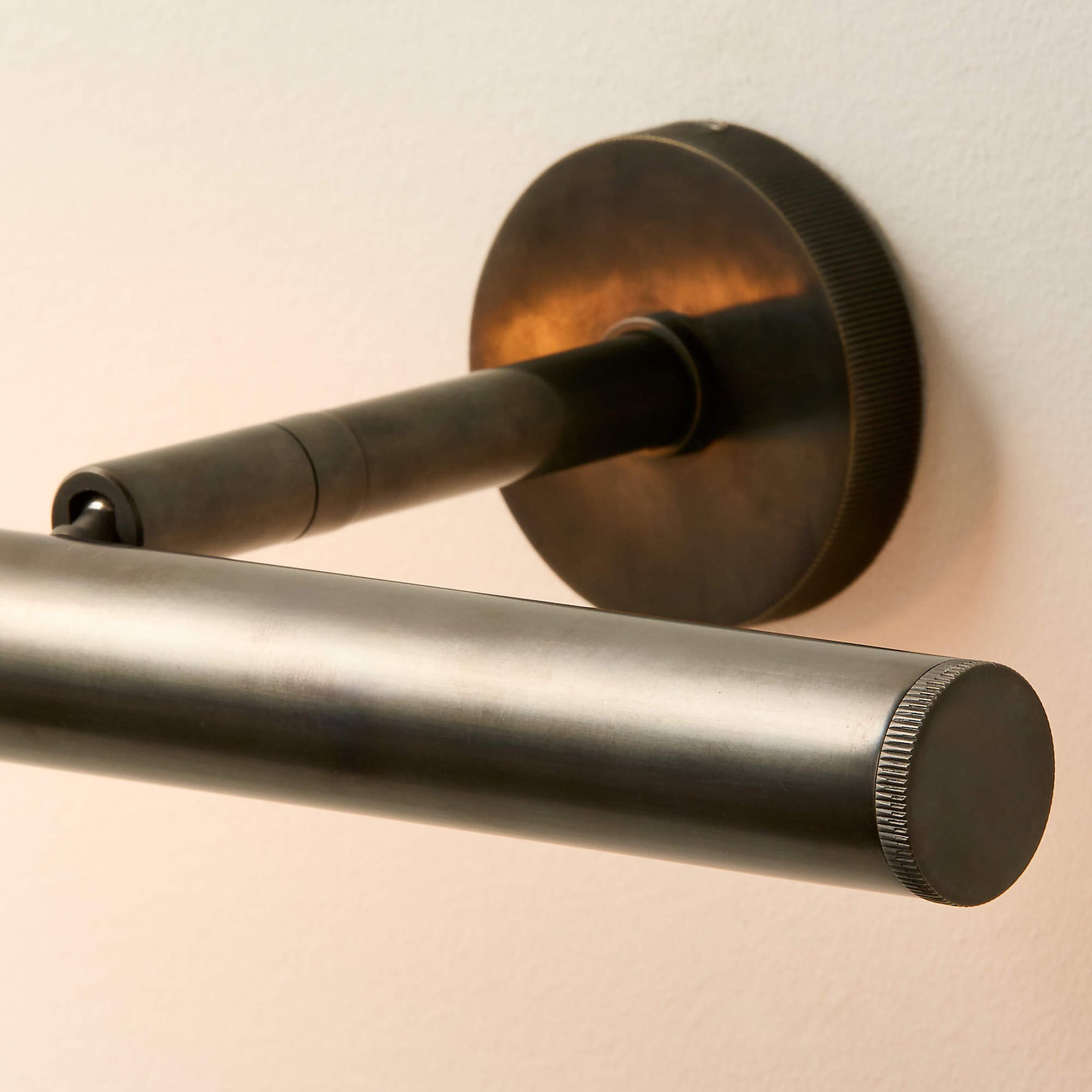 - Elevate your gallery wall or cherished masterpiece with the Ape Wall Mount Picture Sconce. Featuring clean, modern lines and a fully adjustable arm for precise lighting, this fixture is a piece of art in itself. Crafted from brass, it boasts a living finish that will gracefully develop a unique vintage patina over time, making it a lasting heirloom.