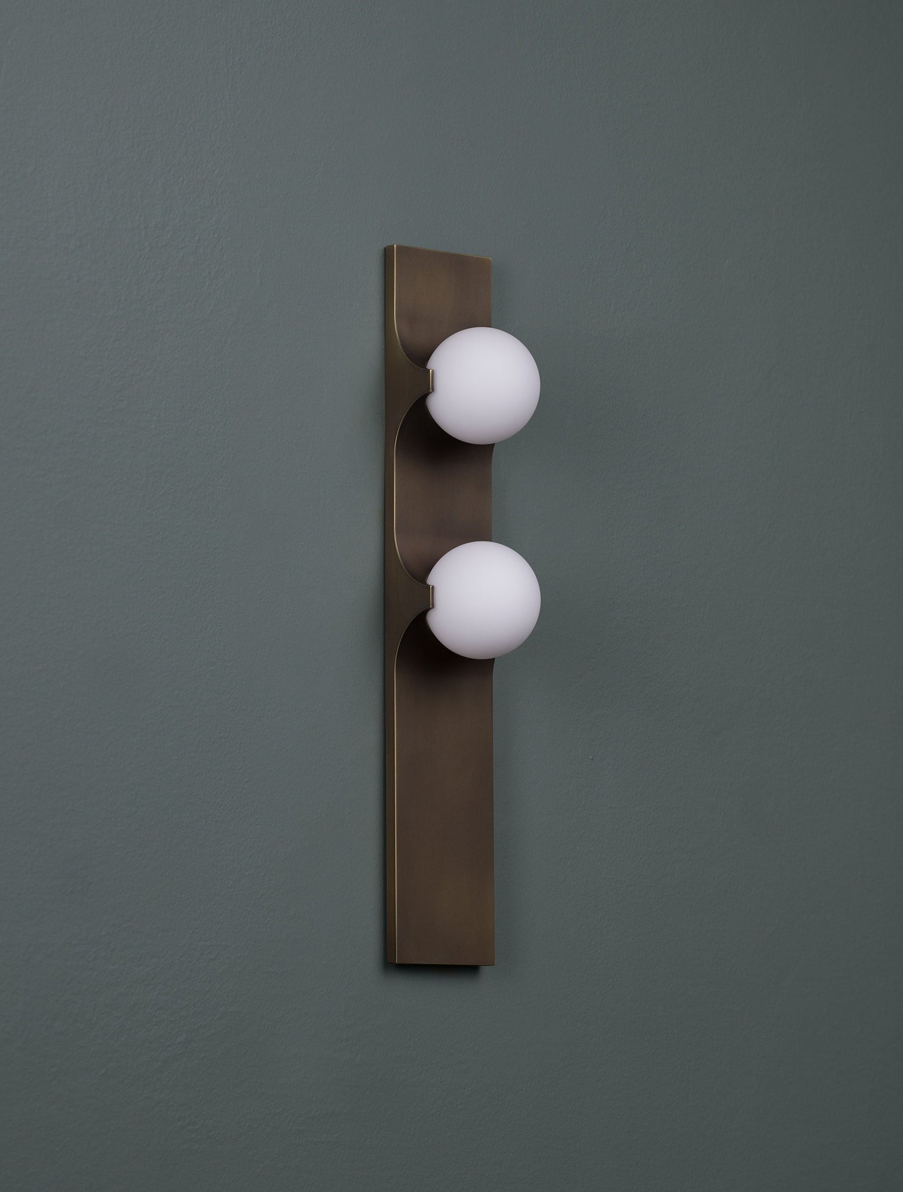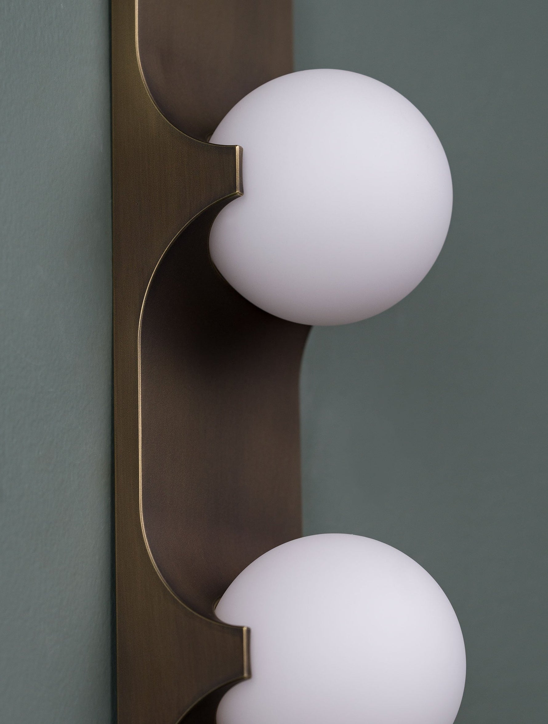 - Each curve is meticulously crafted to not only support the glass globes but to amplify the light within, casting a warm and inviting glow across your space. Available in single, or double globe configurations, the repetition of the elements introduces a sense of rhythm and modern sophistication.