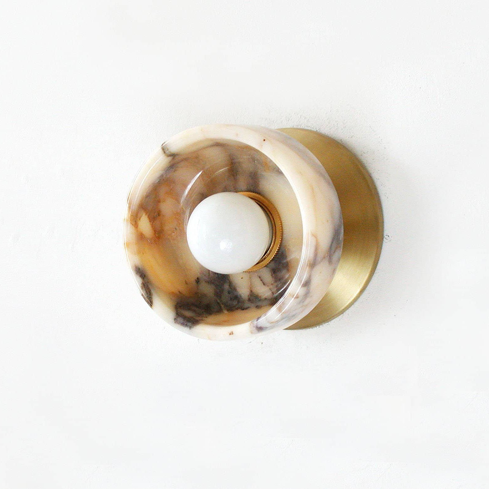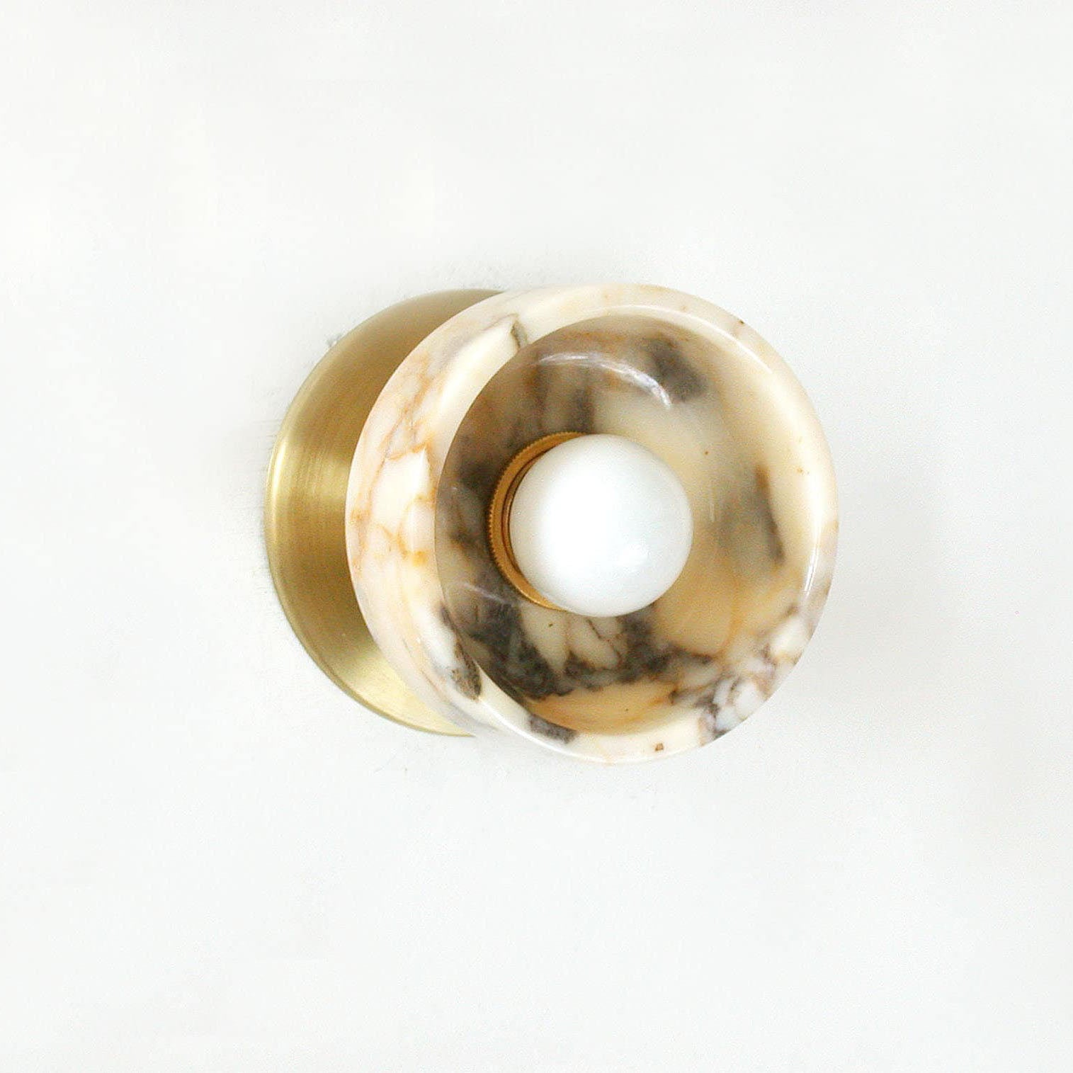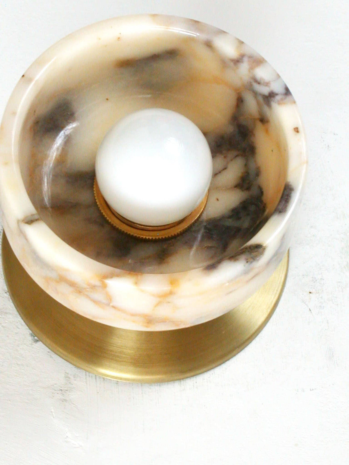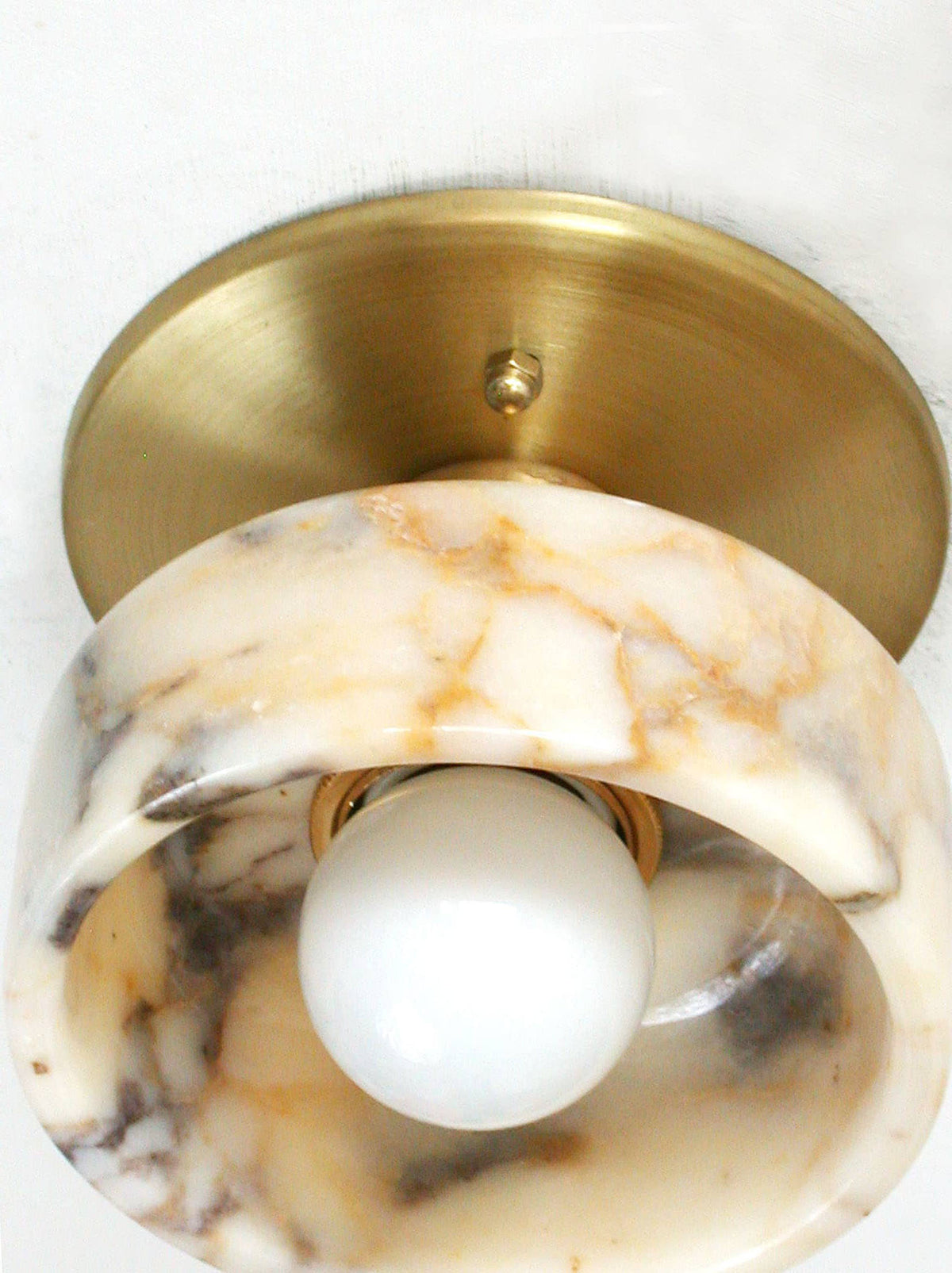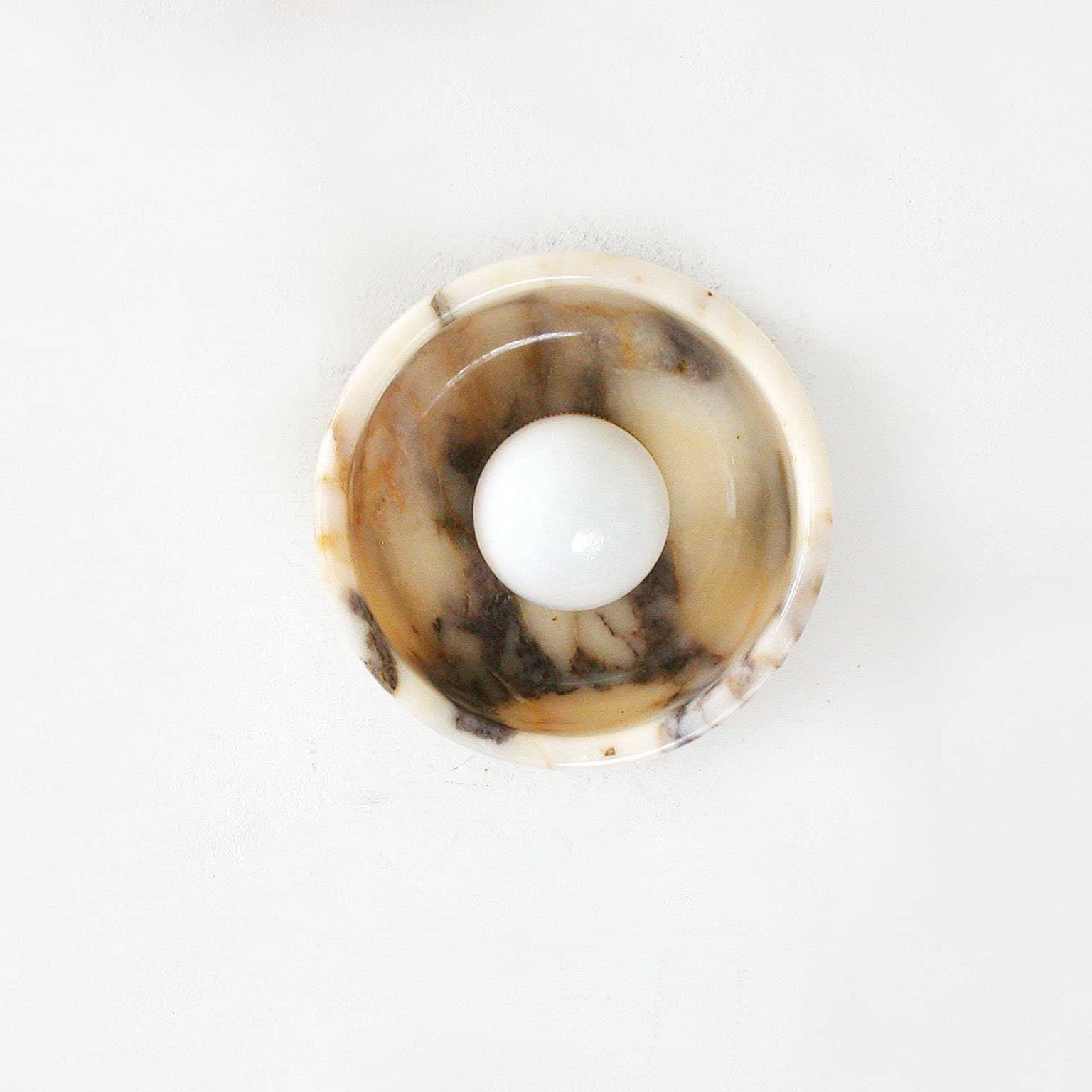 - At Calacatta Bowl Mini Flush Sconce's heart lies a slab of Calacatta Oro, a marble revered for its poetic intensity. We do not simply cut this stone; we curate it. Each piece is selected for its unique narrative—a bold, sweeping vein of amethyst or violet that dances across a soft, off-white canvas, often kissed by subtle hints of gold and grey. This is the legacy of immense pressure and time, a natural artwork that no human hand could ever replicate.