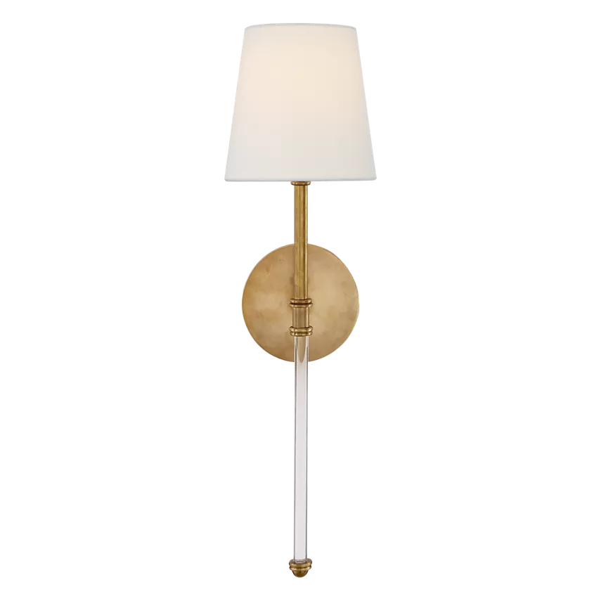 - The journey of the Camille Sconce begins with its solid brass body. This is not merely a metal finish but a substantial foundation that promises enduring quality. Brass, with its timeless vintage character, brings a layer of refined elegance and a subtle, warm luster that develops a richer patina over time. The body is expertly crafted with thoughtful texturing and detailing, ensuring it captivates the eye even when the light is off. It provides a sturdy and beautiful anchor for the softness that rests above it, offering a striking visual weight that feels both premium and permanent.