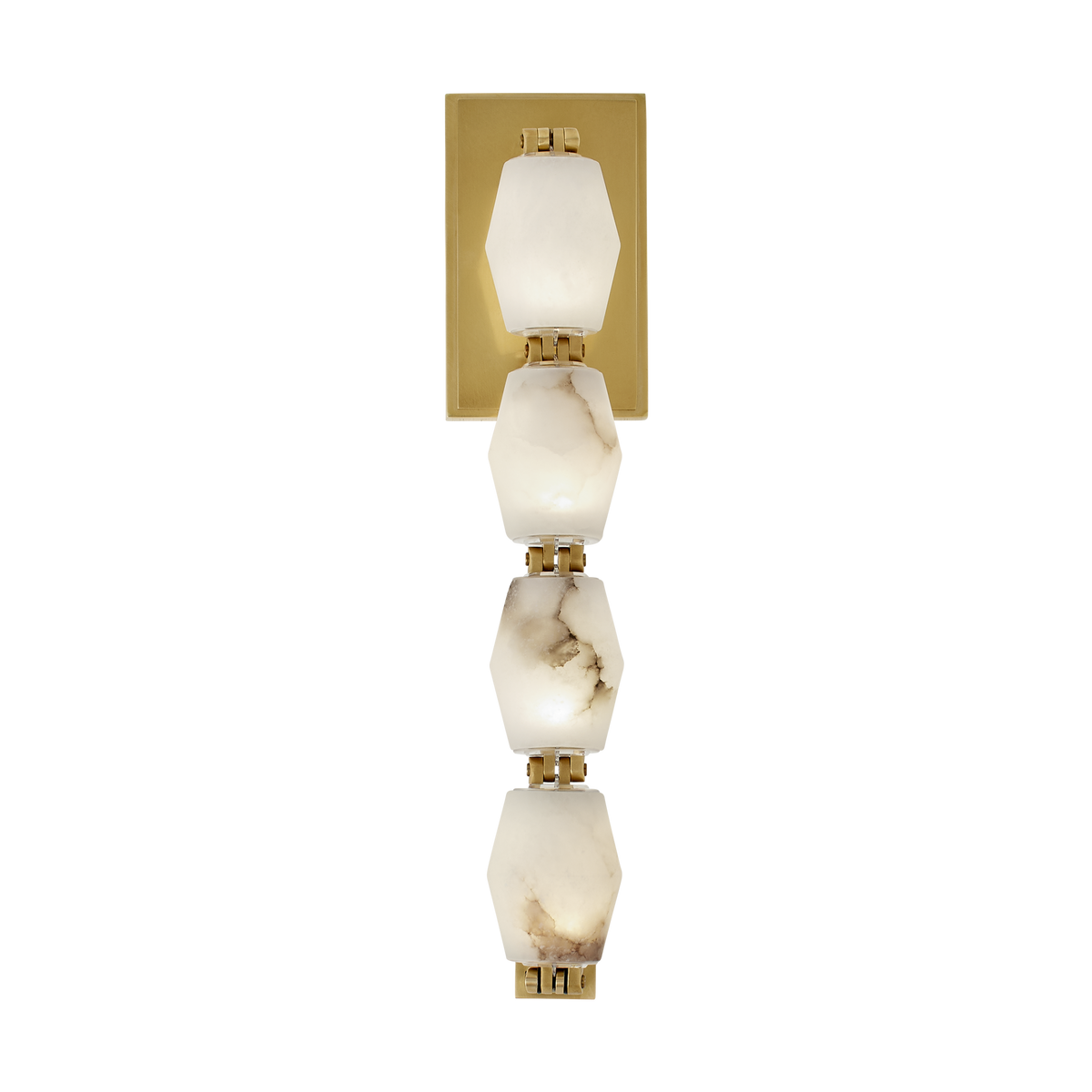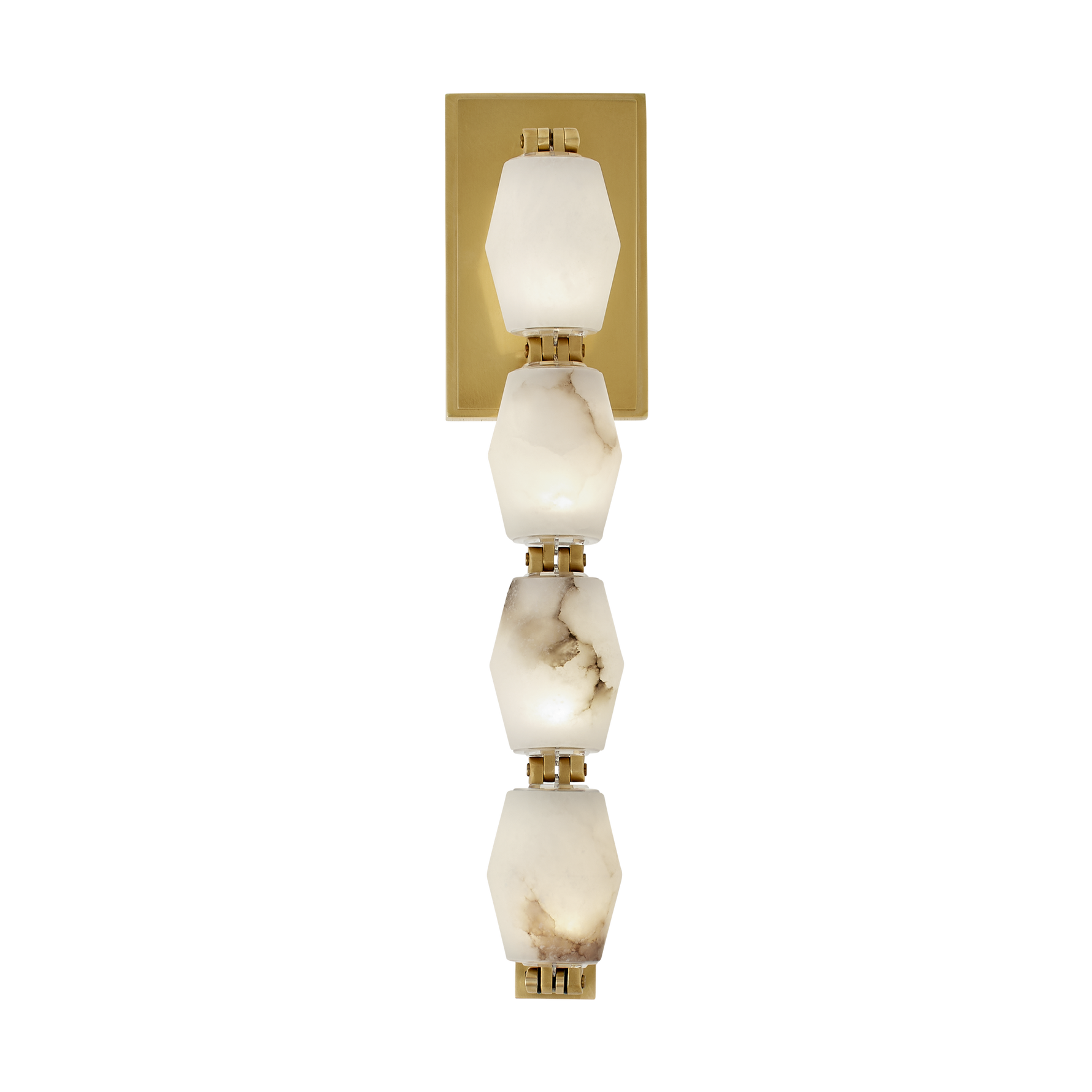 - The sculptural form of The Collier is made possible by its interlocking system of solid brass connectors. These are not hidden components but celebrated elements of the design. Custom-engineered to provide robust support for the substantial alabaster glass, the connectors add a striking linear geometry to the piece. Finished in a natural brass tone, they develop a rich, living patina over time, ensuring your chandelier evolves with a character uniquely its own.