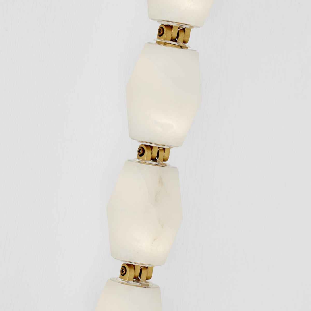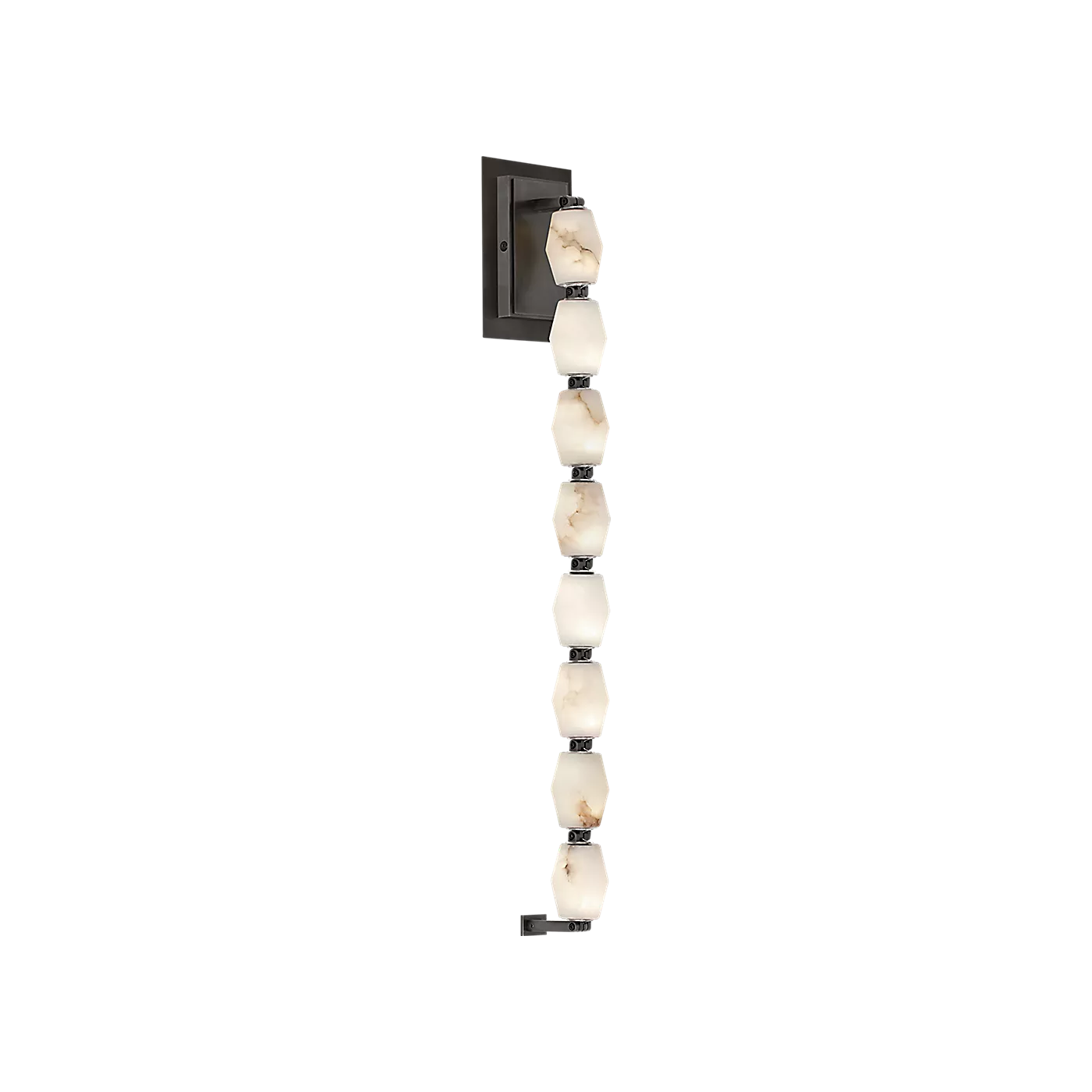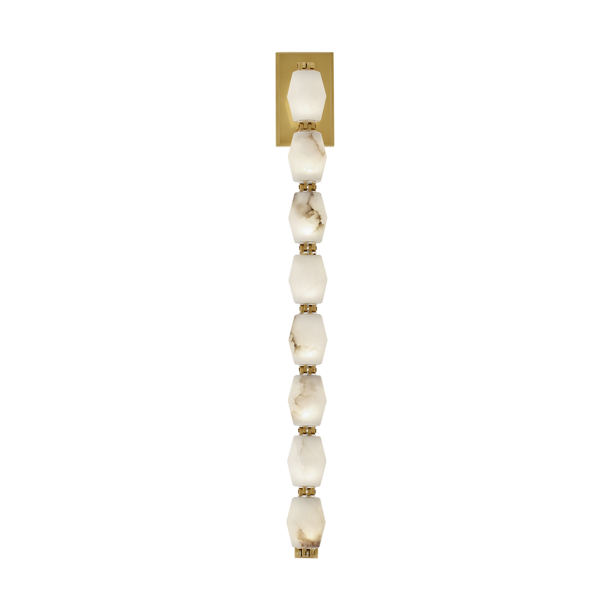 - Imagine a sculptural cascade of light, where individual facets of solid alabaster glass seem to float in perfect harmony. The Collier Alabaster 28 Sconce creates an incredible light sculpture, casting a stunning, warm, and diffused glow that transforms any environment. Each predetermined strand is a building block for your custom vision.