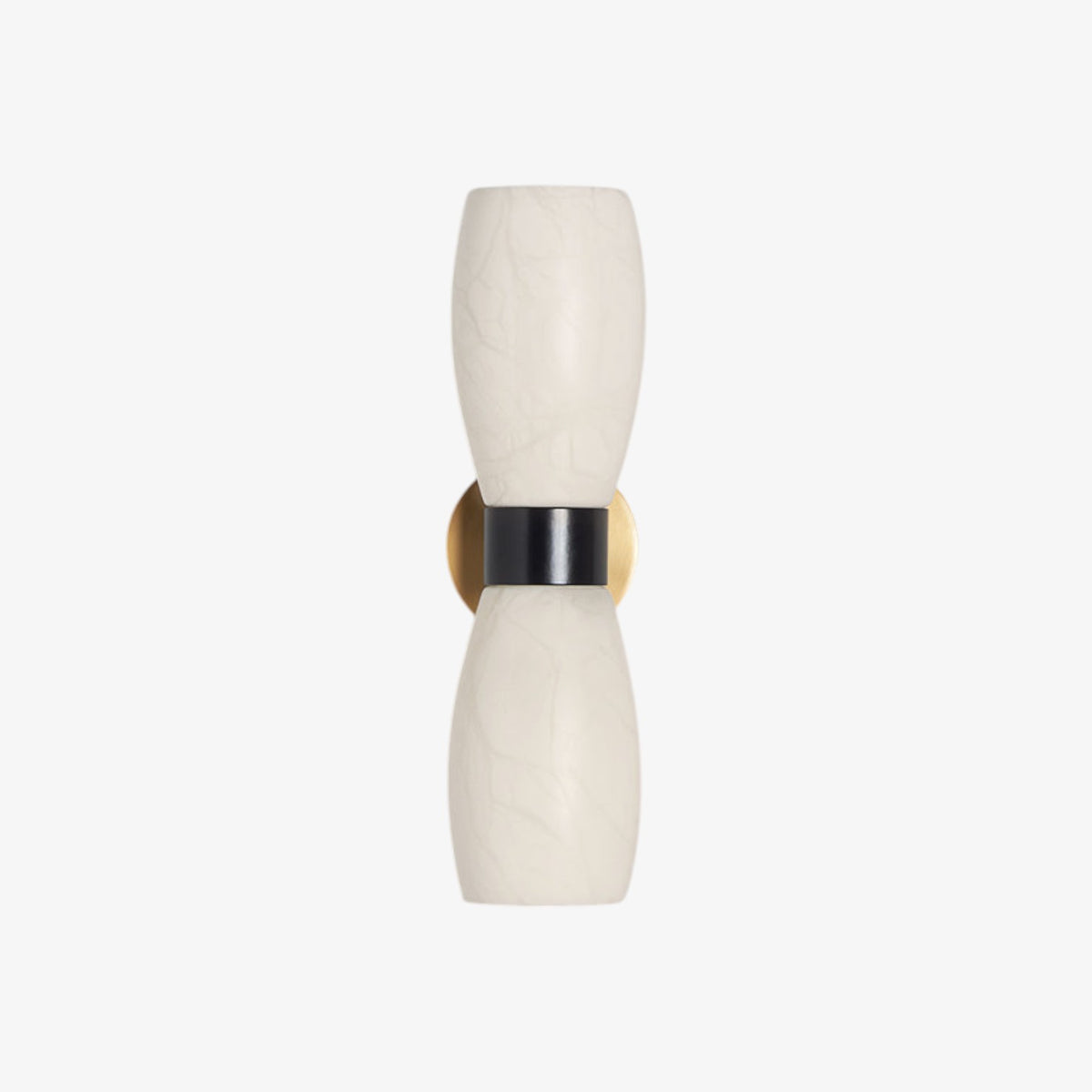 - Crafted for those who appreciate the beauty of contrasting elements, this sconce harmoniously blends the warm, radiant tones of a French gold frame with the bold, modern sophistication of matte black accents. At its heart lies the star of the show: a beautifully crafted alabaster shade. Each vein and subtle variation in the stone ensures your sconce is uniquely yours.