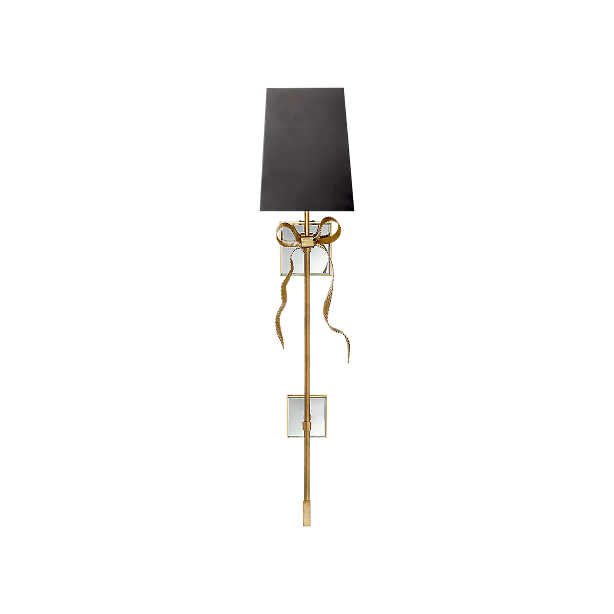 - Ellery Tail Sconce's heart lies an exquisitely crafted brass bow, a symbol of grace and charm. With its smooth, flowing lines and a rich, elegant metallic finish, this sculptural element becomes an instant visual focal point, even when the light is off.