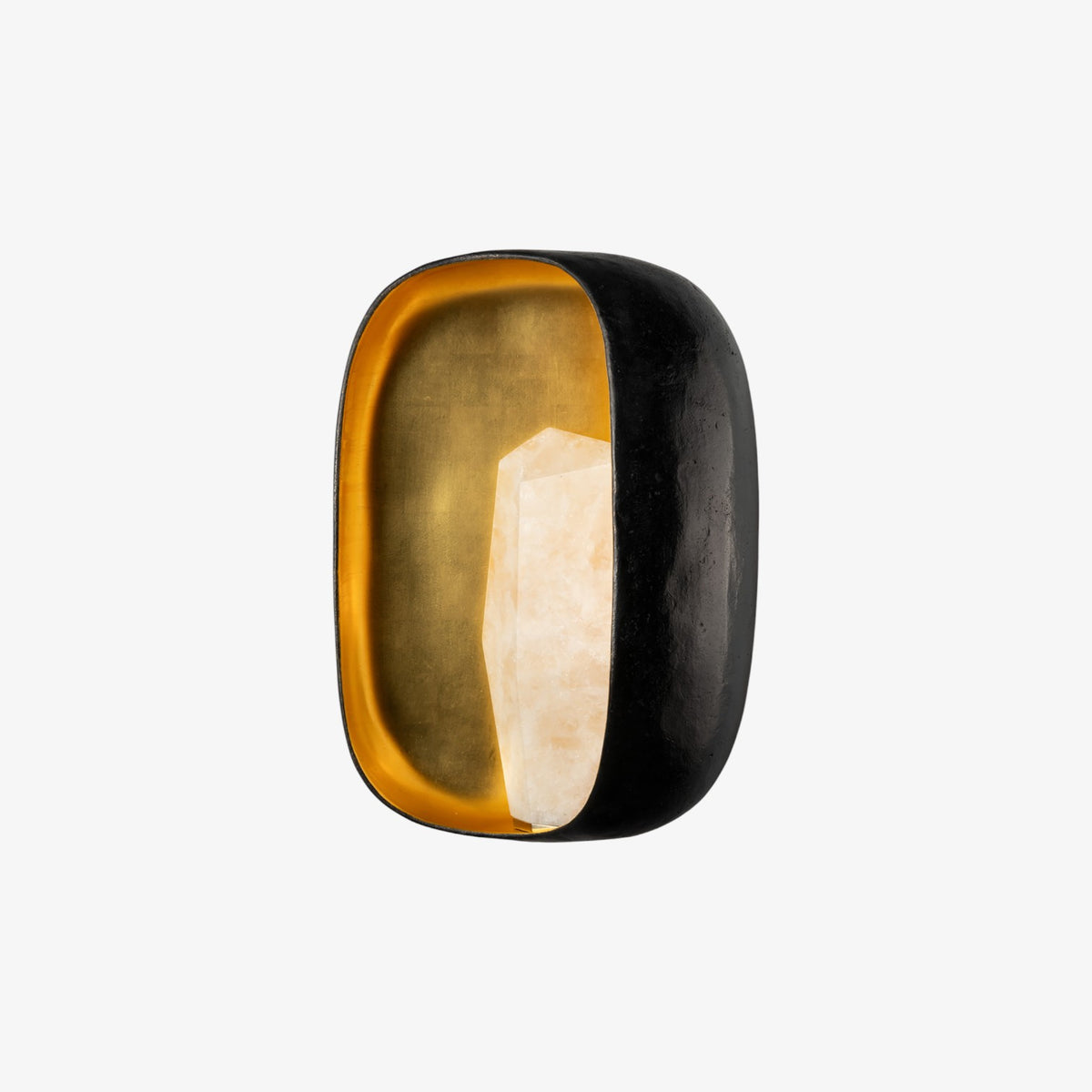 - Imagine a bronze cocoon, textured and organic as if discovered in a deep cavern, gently pried open to reveal a breathtaking secret. Within, a faceted crystal gemstone rests, lined in luminous gold. When illuminated, this crystal glows with a seductive, ambient light that casts a warm and inviting aura across any room.