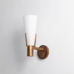 • Enhance your space with the Isidra Wall Sconce, a perfect blend of timeless design and contemporary appeal. Crafted with a solid brass body, this sconce features a vintage, aged texture that adds durability and a touch of classic sophistication. The warm metallic sheen creates a unique, eye-catching allure, making it a standout piece in any room.