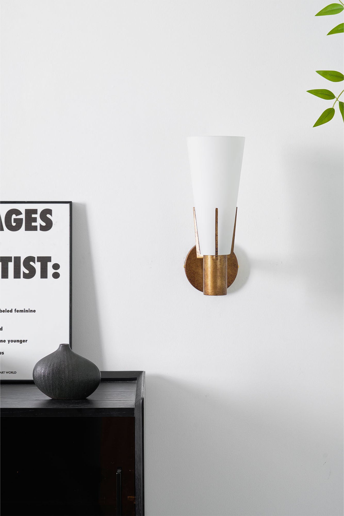 • The translucent glass shade diffuses light softly, producing a hazy, layered glow that enhances ambiance and creates a cozy atmosphere. Whether used as accent lighting or a decorative statement, this sconce effortlessly combines functionality and style.