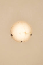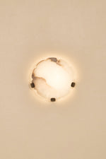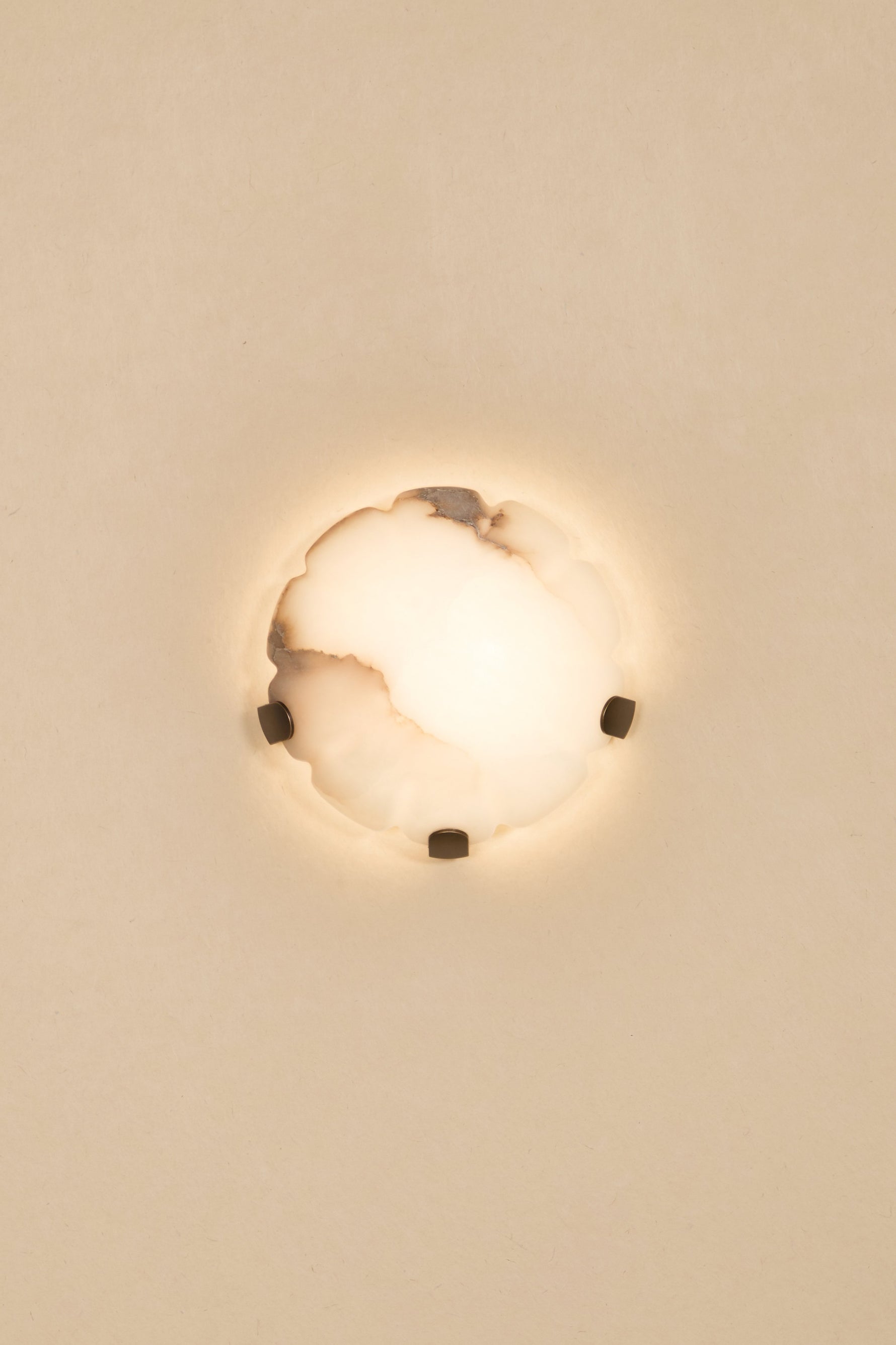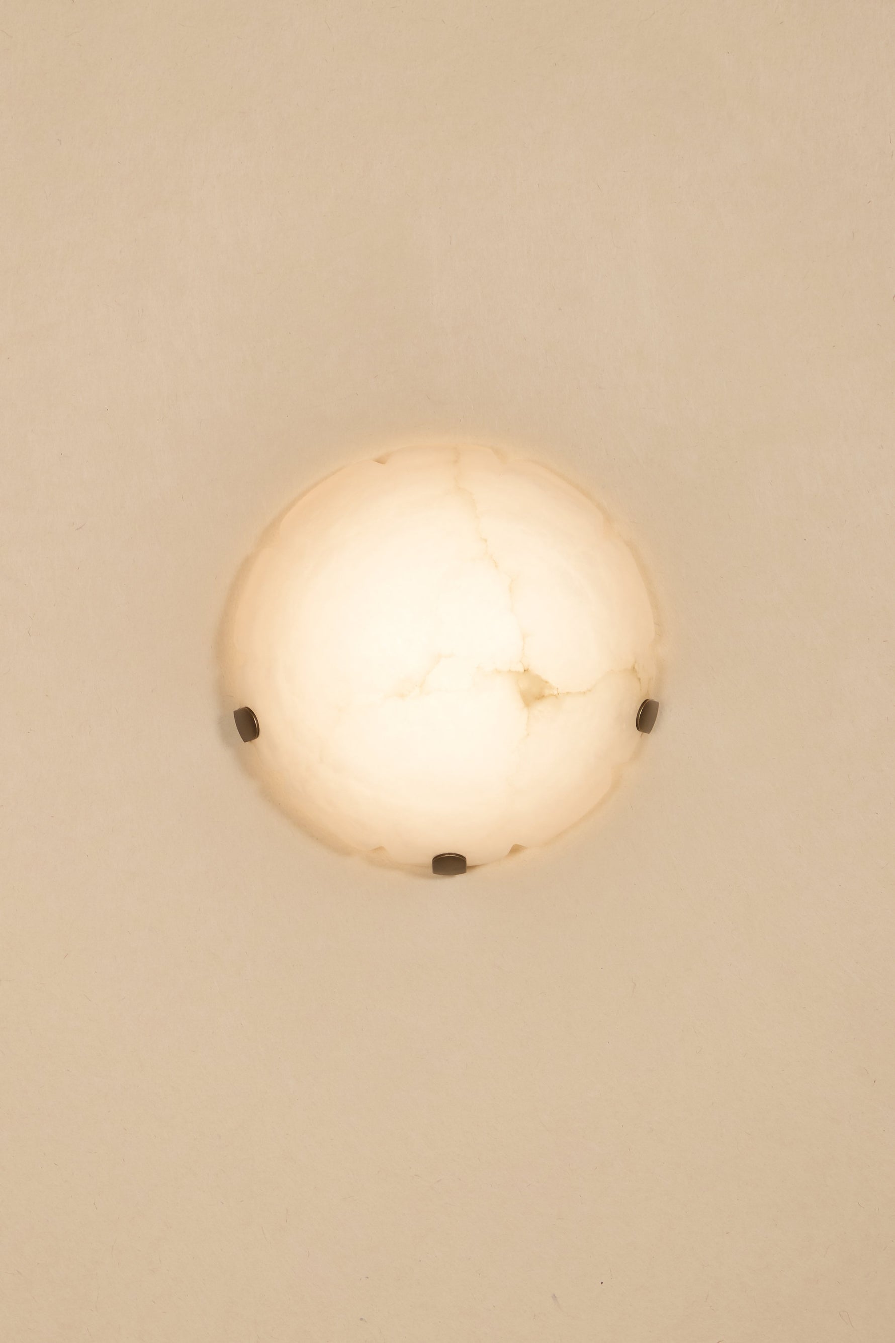 - Jellyfish Sconce at the heart of its design lies the lamp's body, meticulously carved from natural Spanish alabaster. Each piece is entirely unique, boasting a subtle, marble-like veining that is a signature of this majestic material. When unlit, it presents a solid, milky-white elegance. But when illuminated, the true magic happens: the alabaster becomes semi-translucent, allowing light to permeate its structure and emit a wonderfully soft, warm, and even radiance. This creates an ambient glow that is gentle on the eyes, perfect for cultivating a tranquil and relaxing atmosphere. It is the warmth of natural stone, translated into light.
