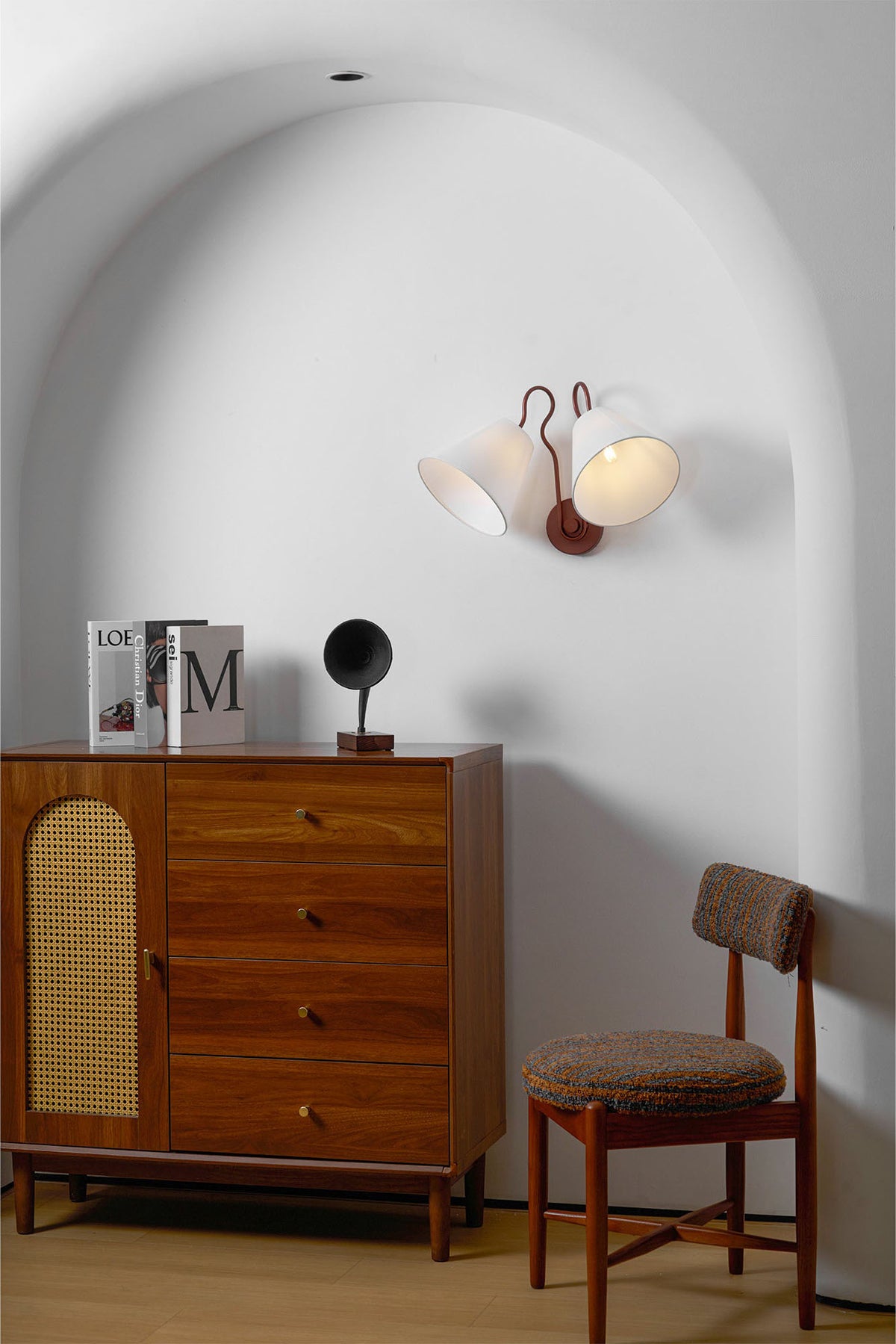 - Madelyn is all about the double take—sleek design, warm light, and curves in all the right places. With its elegant dual-arm silhouette, this sconce adds a touch of modern sophistication to any space. Perfect for flanking a mirror, brightening a hallway, or setting a cozy ambiance in your living room, Madelyn delivers both style and function.