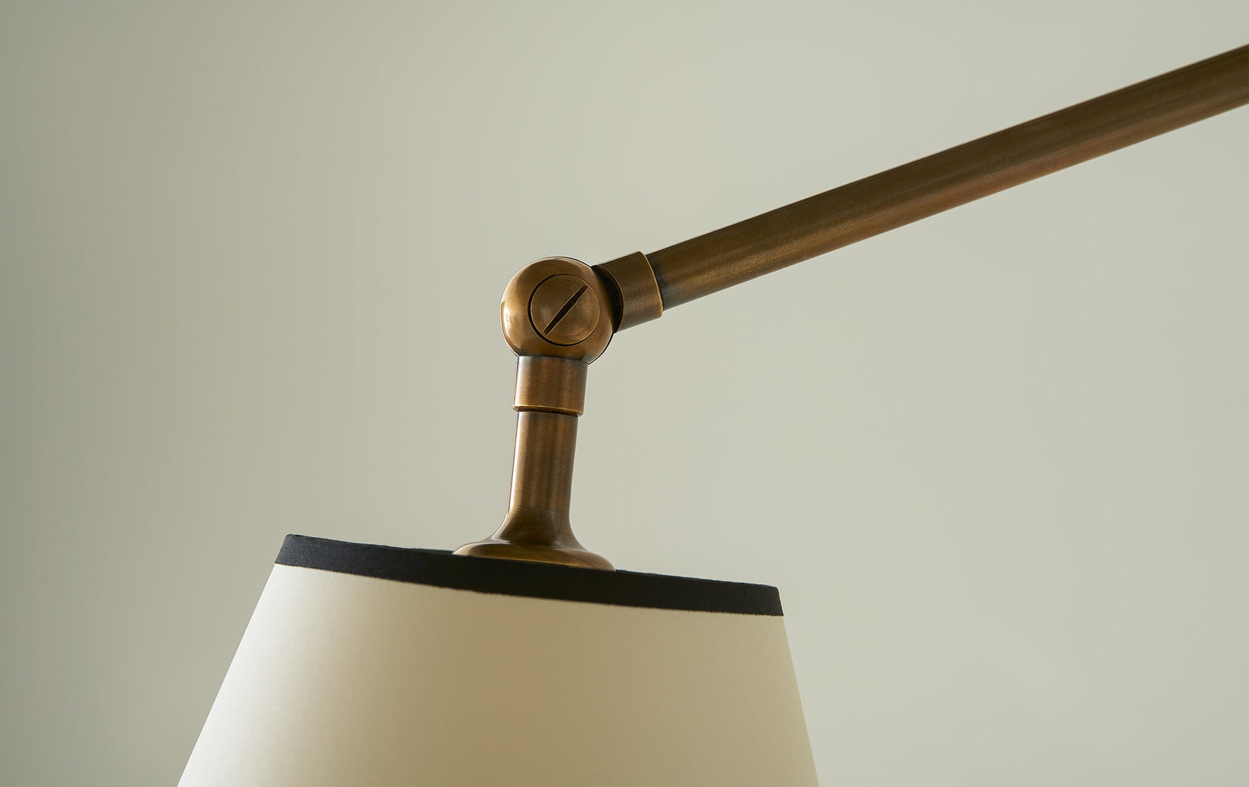 • Its defining feature is the fully articulating arm, allowing you to direct light exactly where you need it. This makes it the perfect, space-saving solution for bedside reading, illuminating a favourite armchair, or adding a warm glow to a dark hallway.