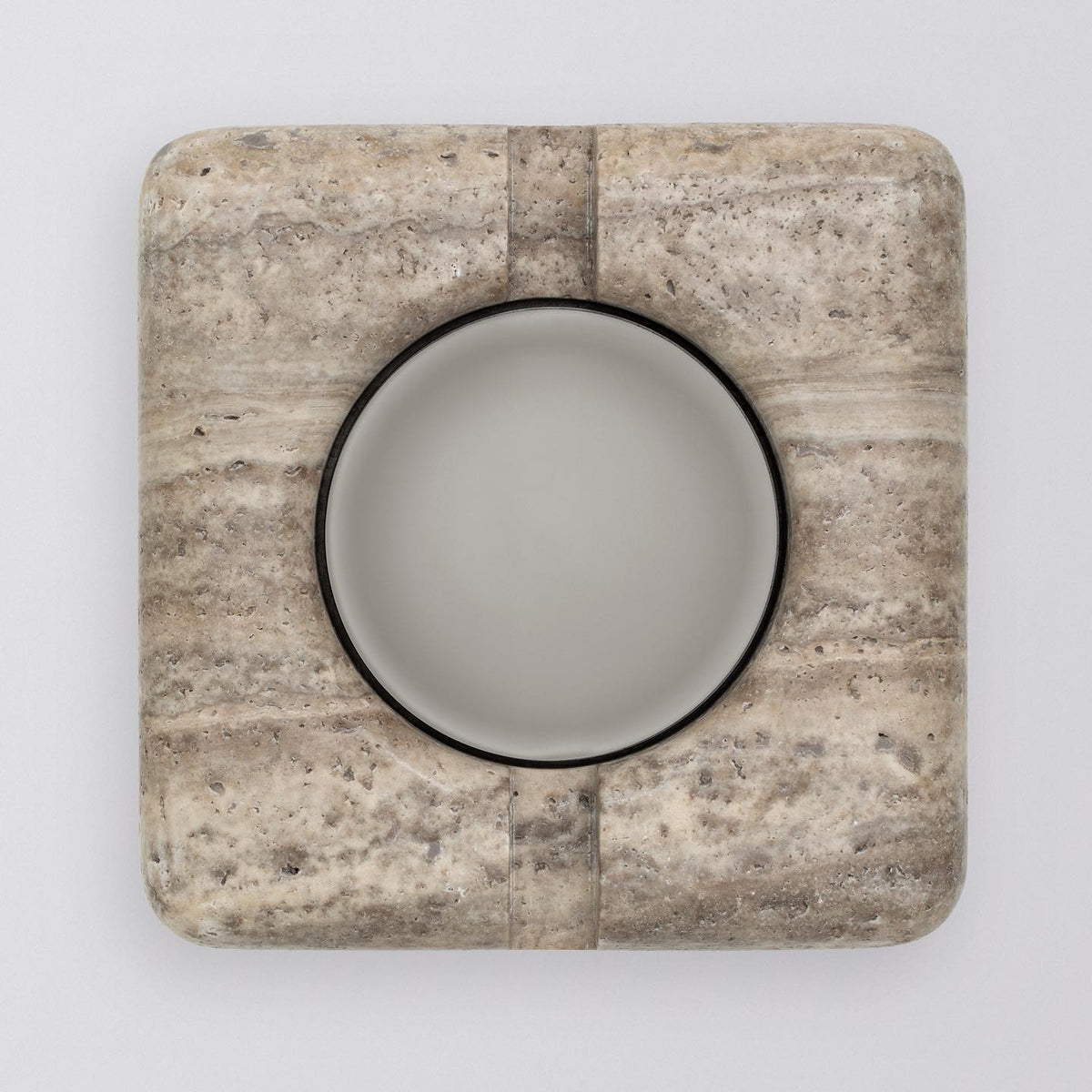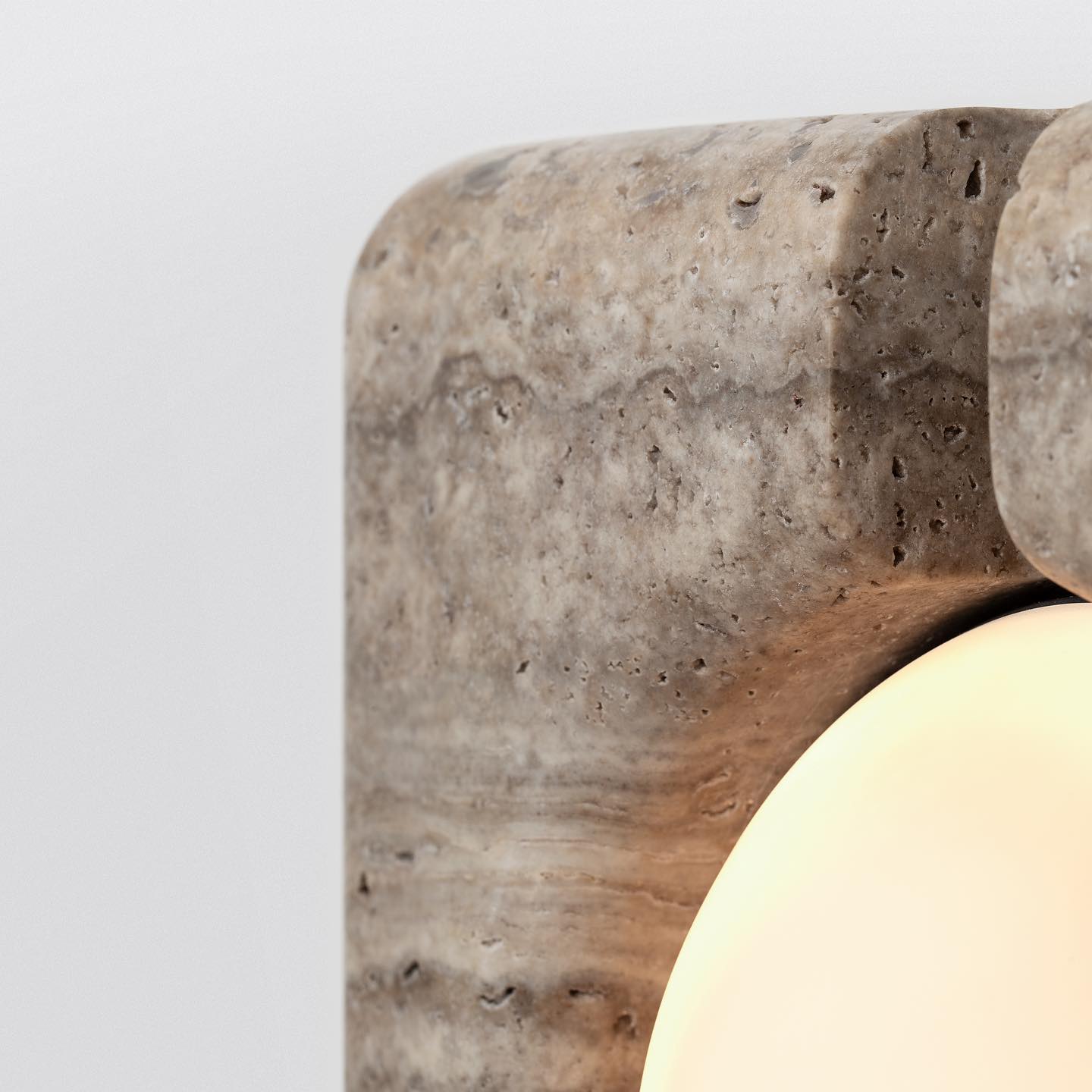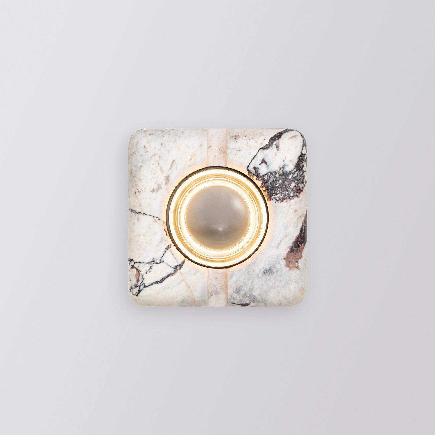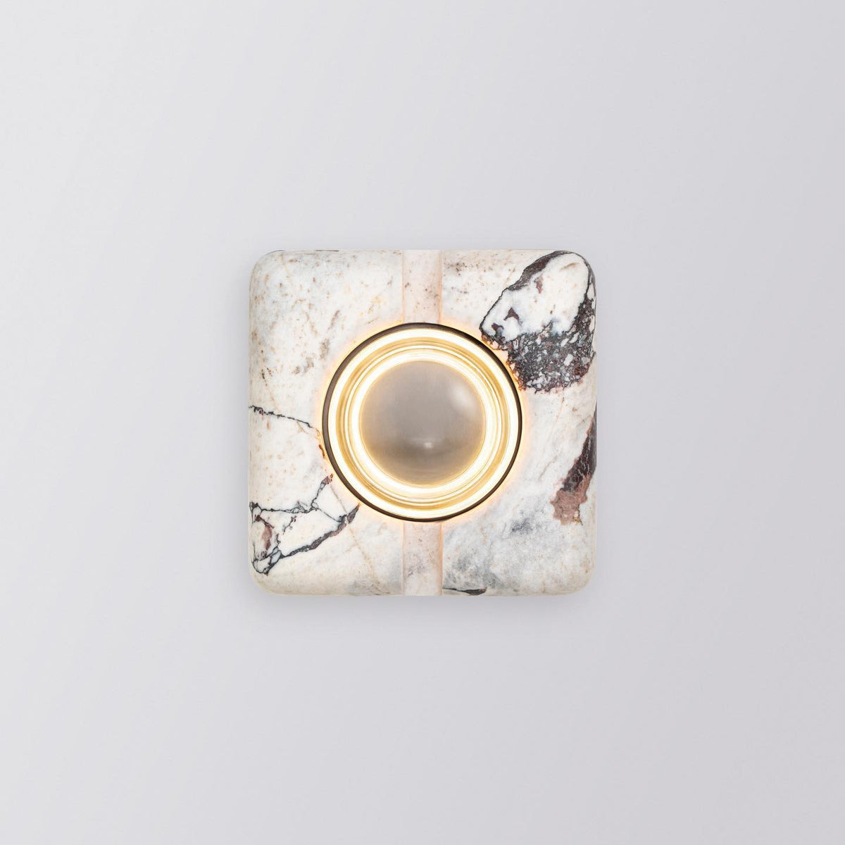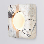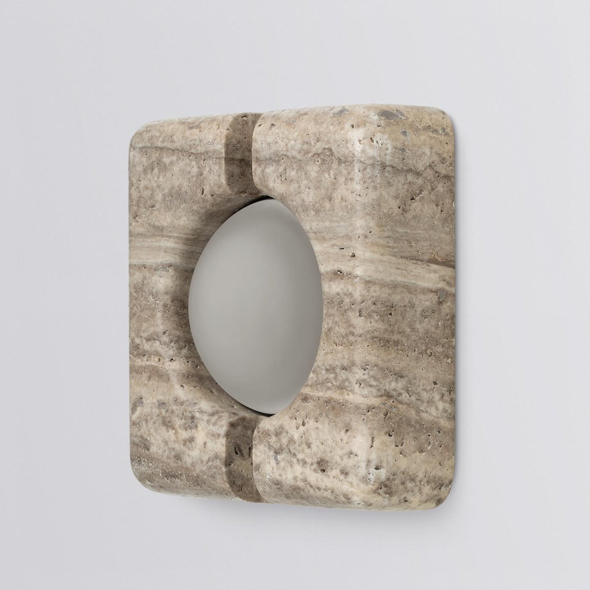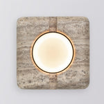 - Introduce a touch of sophisticated tranquility to your space with the Rectilinear Radiance Wall Sconce. This stunning wall light masterfully blends the raw, organic texture of smooth, angular stone with a sleek, rectangular silhouette. At its heart, a central circular glass panel emits a soft, warm glow, creating a captivating contrast of forms.