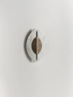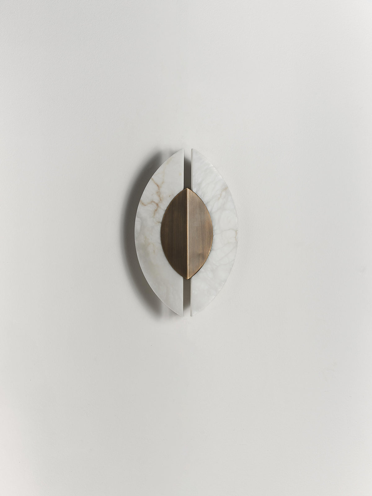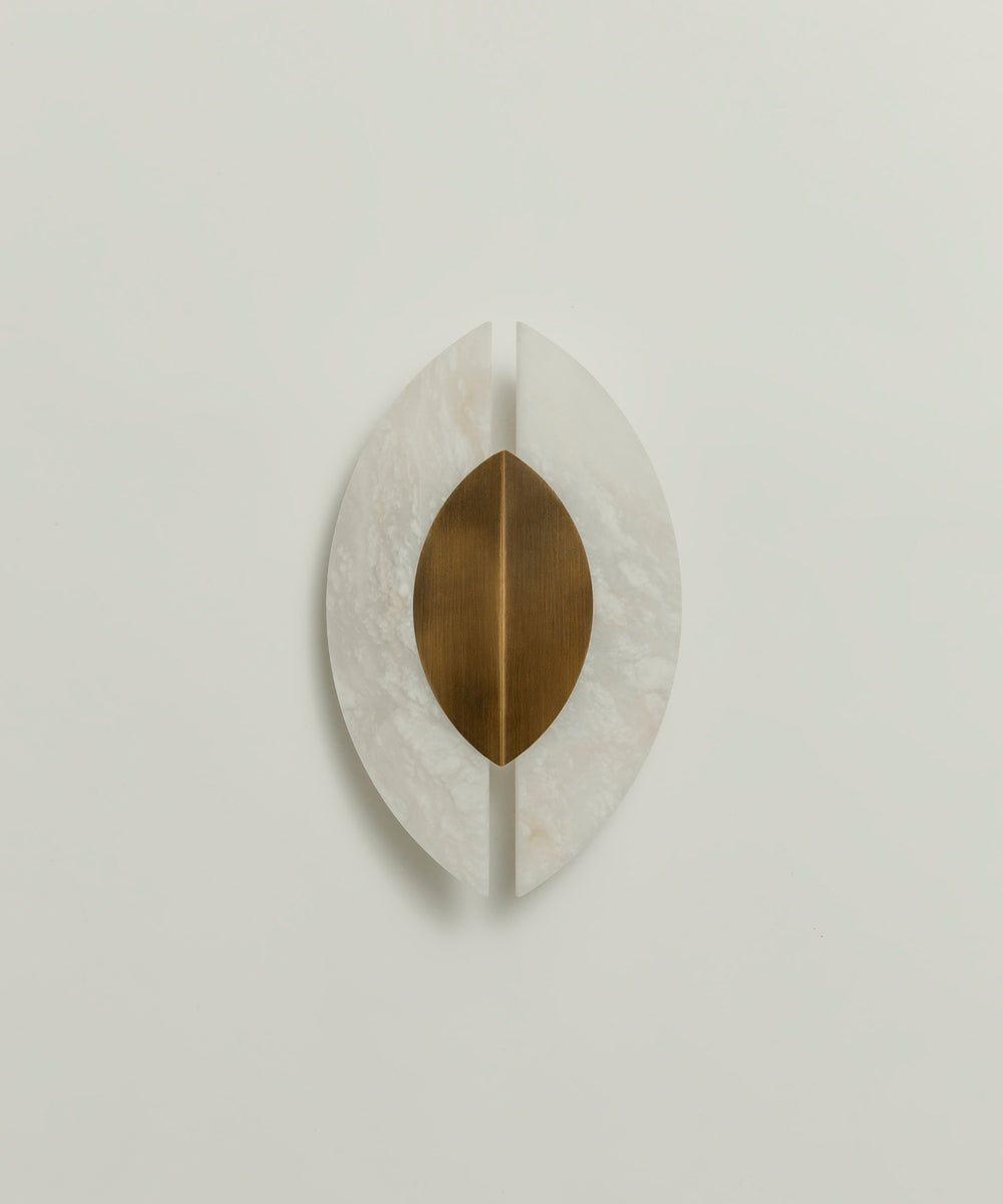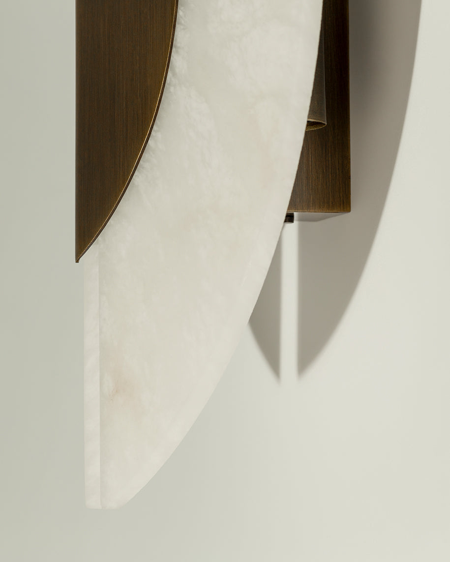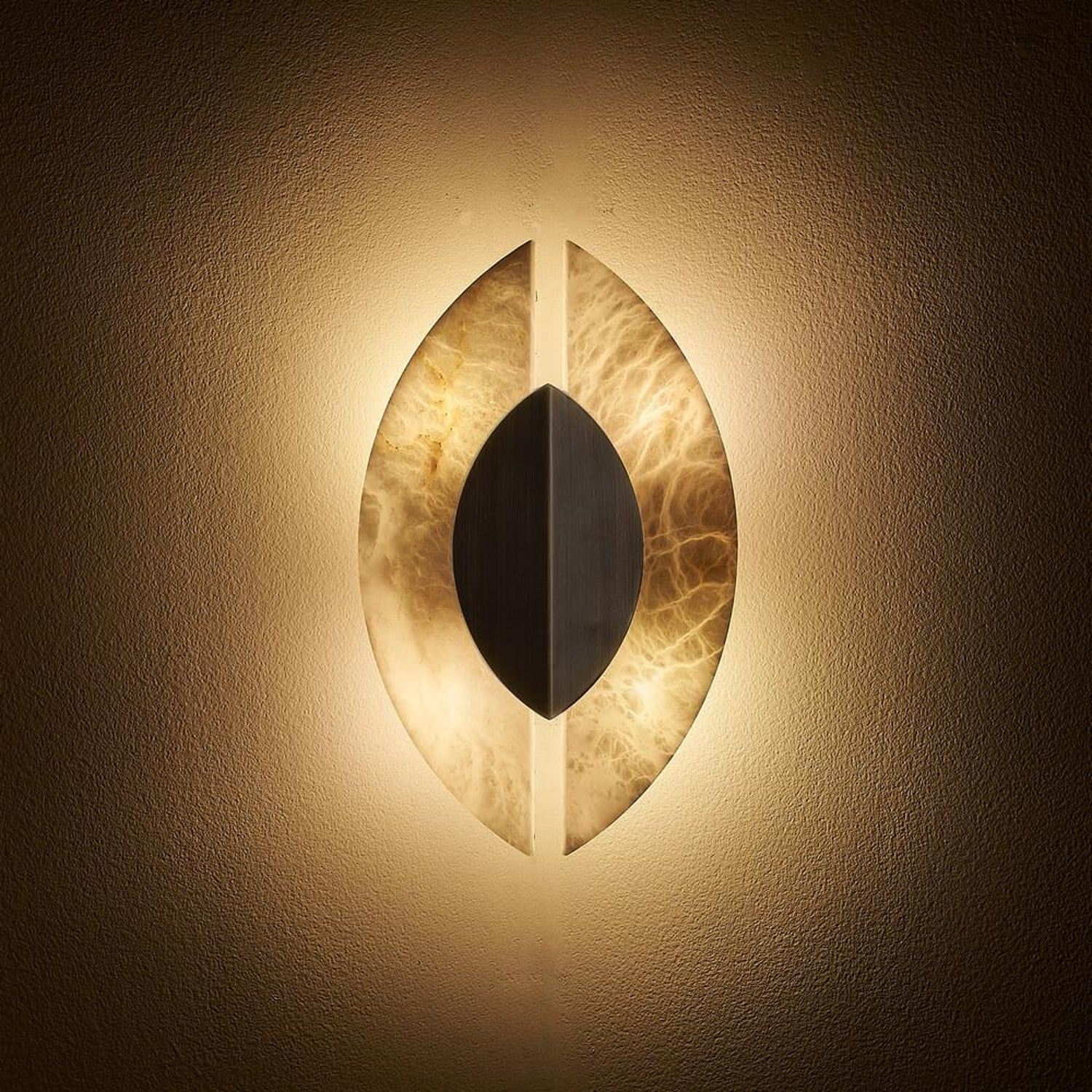- Constructed from brushed brass and natural alabaster, the sconce offers a rich, tactile experience. The warm, metallic frame contrasts beautifully with the textured, stone-like quality of the alabaster, creating a visually captivating centerpiece for any room.
