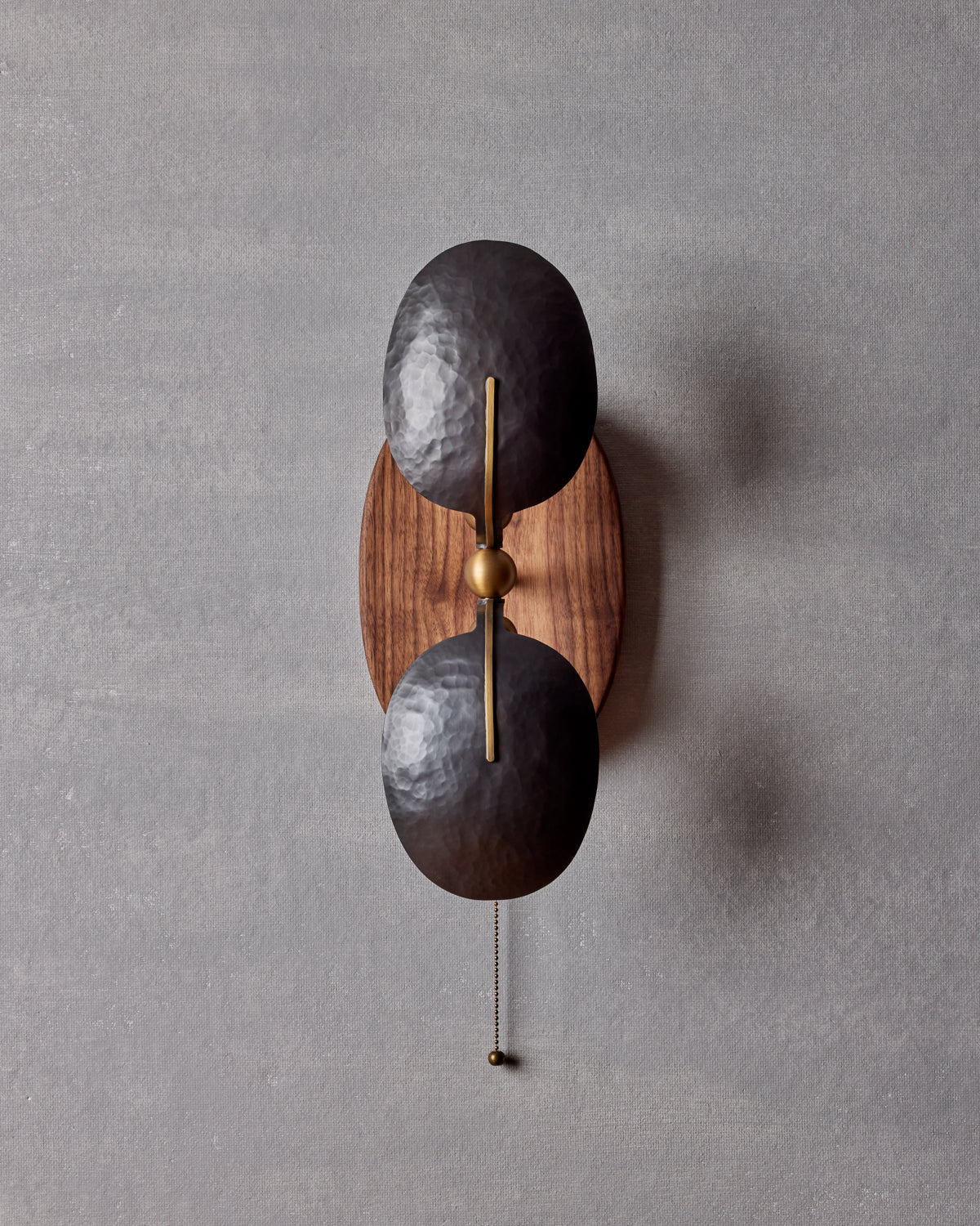 - Every detail begins with the foundation. The sconce is anchored by a hand-finished, solid walnut backplate, expertly milled to a subtle concave curve. This isn't a flat piece of wood; it's a sculptural element that catches the light and creates soft shadows, adding depth and a touch of organic modernity. The rich, varied grain of the walnut ensures that each sconce is utterly unique, bringing the warmth of nature directly into your home.
