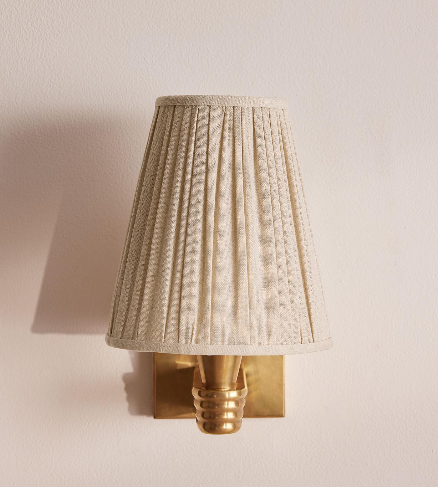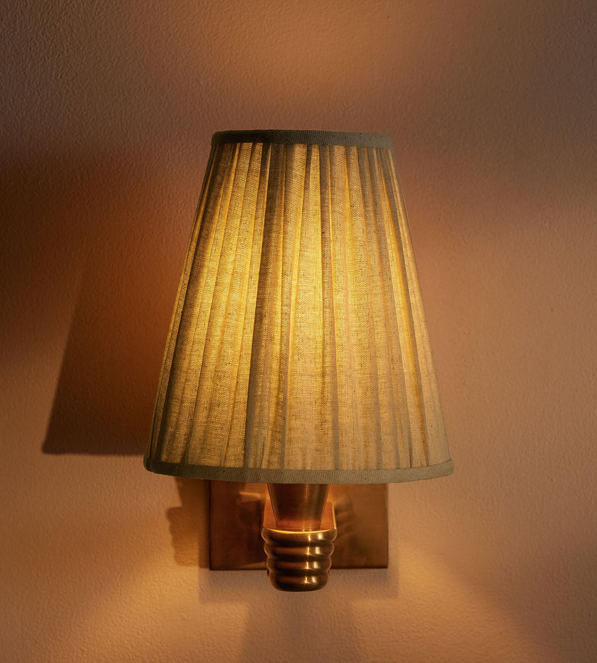 - Our Viola wall light emits a soft glow for the hallway or living room. Inspired by Rome, a linen shade has been hand-pleated alongside a bespoke molded wall arm in solid brass. Fluted detail adds extra texture and depth to this piece, with the brass finish made to patina over time.